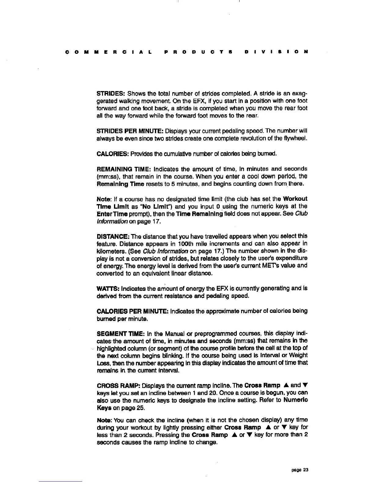 Precor EFX 546 - Strides; Distance; Segment Time; Cross Ramp
