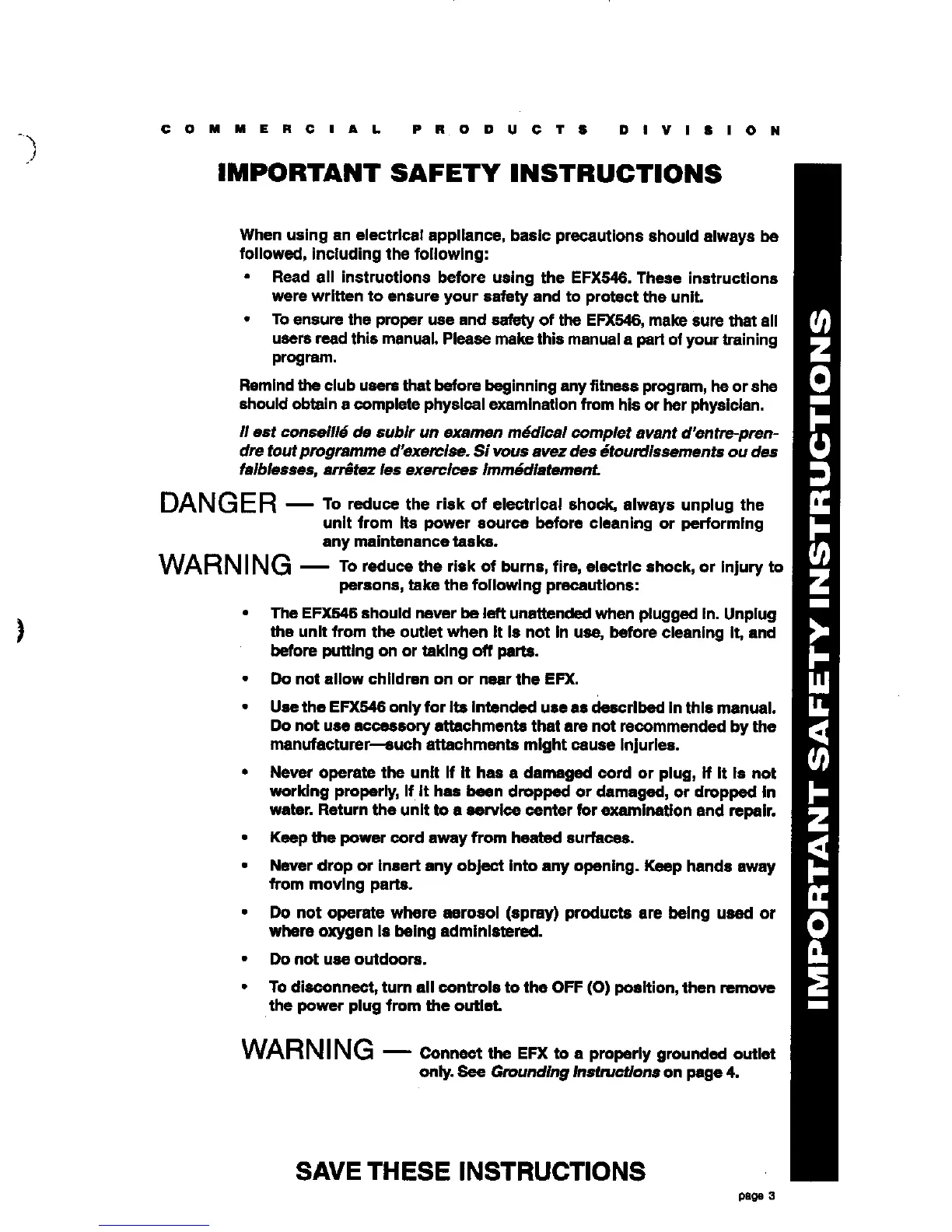 Precor EFX 546 - Safety Instructions