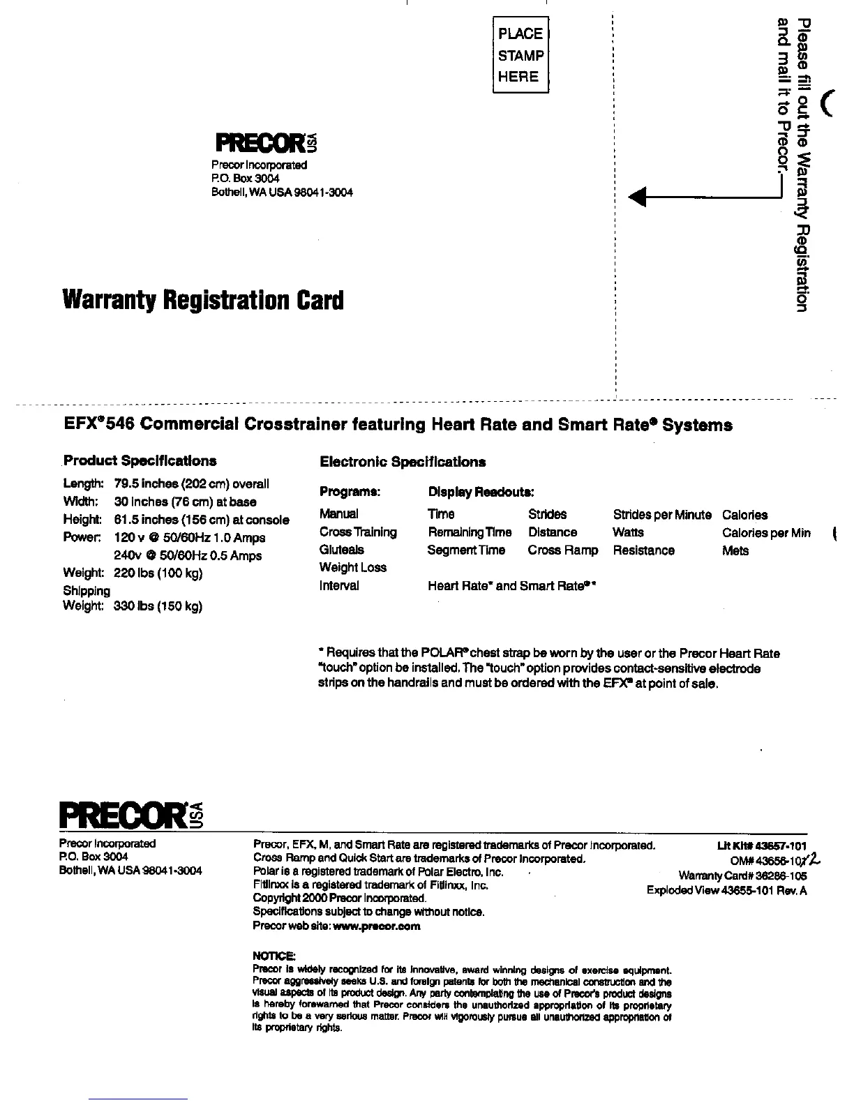 Precor EFX 546 - Specifications