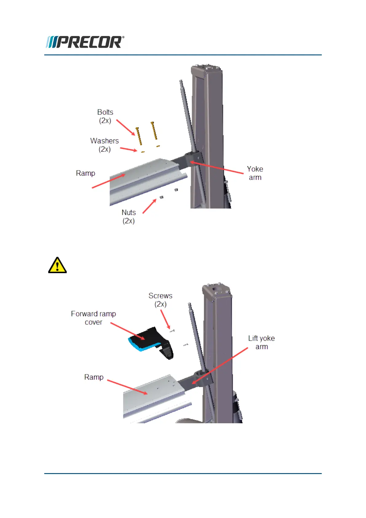 CAUTION:Do not over tighten the forward ramp cover screws which could strip