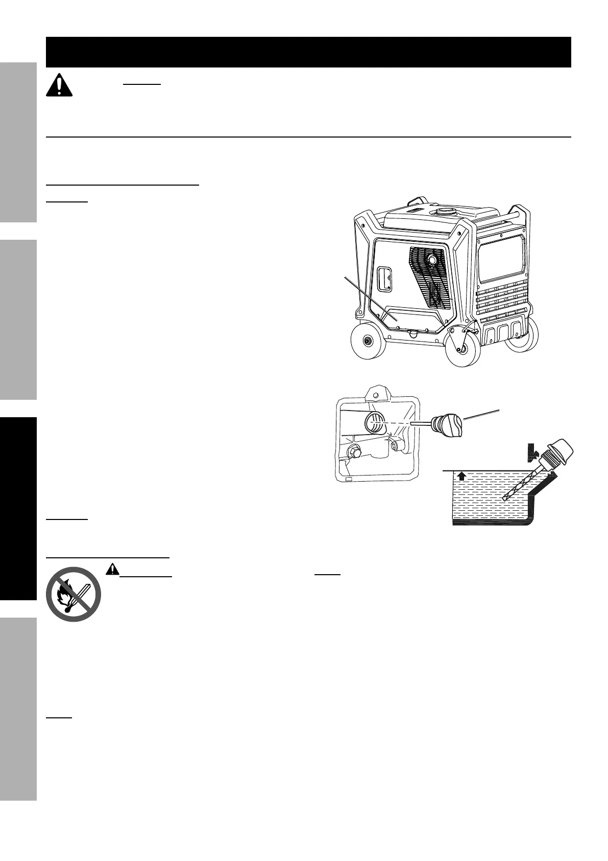 Inspect Engine and Generator looking for damaged, loose, and missing parts before set up and starting.