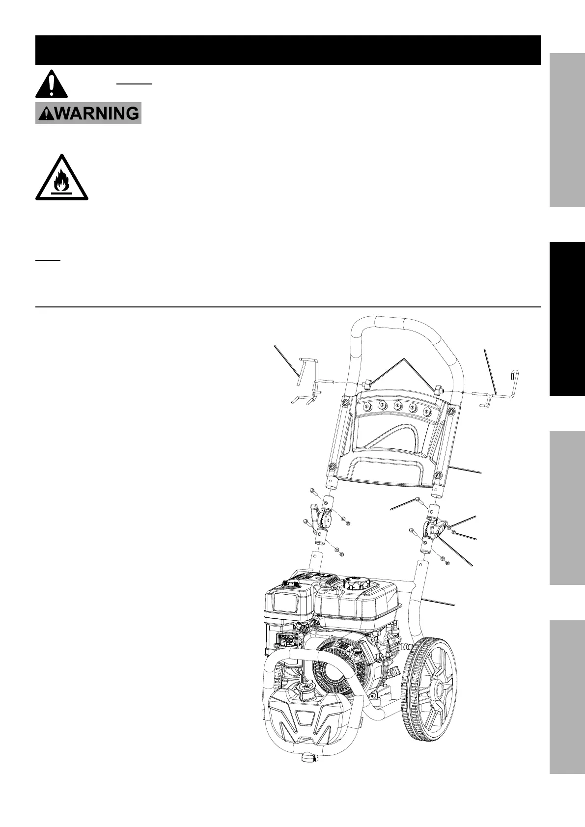 Operation of this equipment may create sparks that can start fires around dry vegetation.