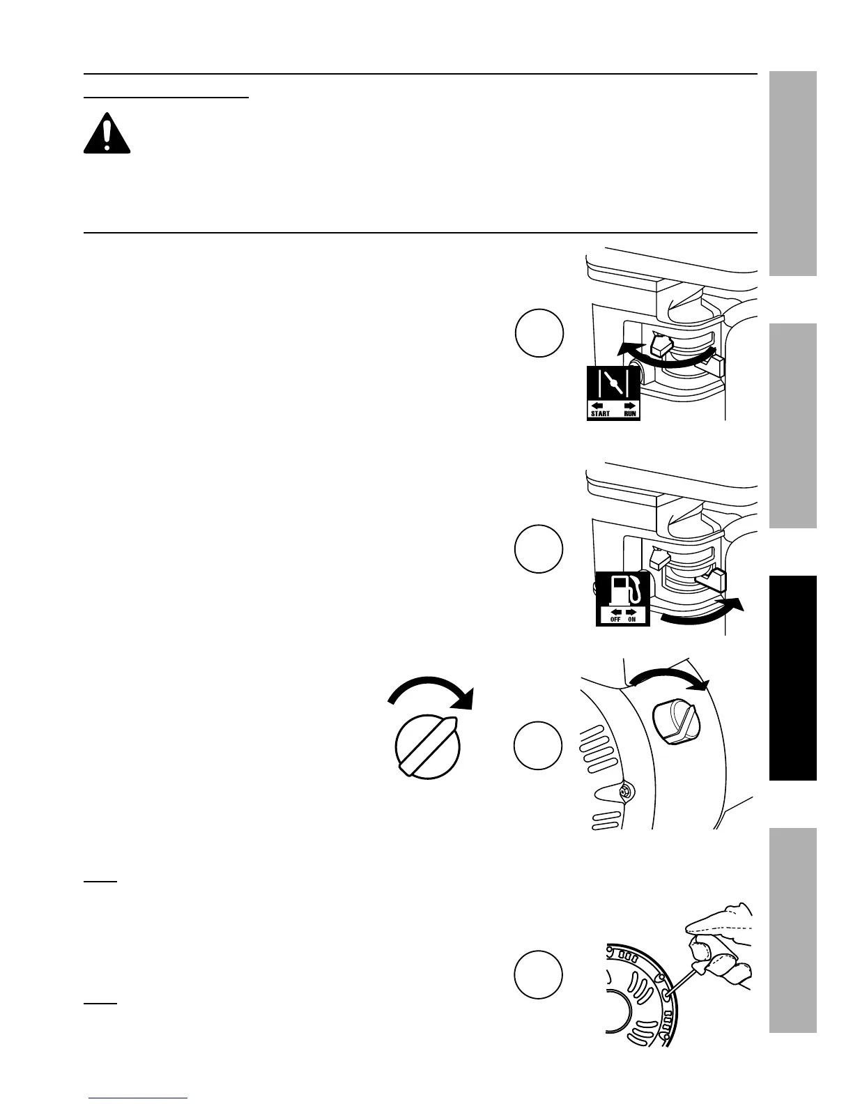the Engine’s carburetor. Then pull the Starter Handle