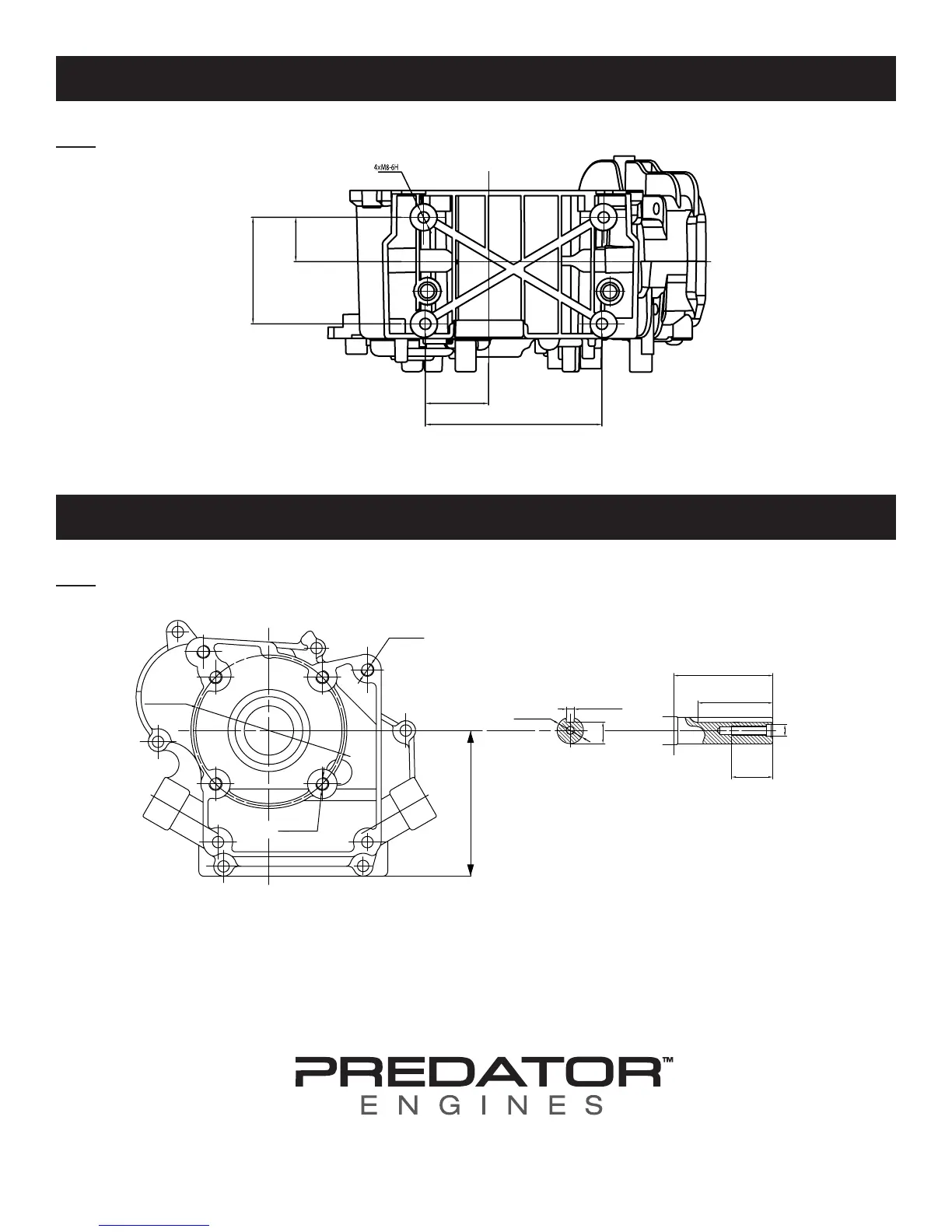 Predator 68124 - Engine Dimensional Diagrams; Mounting Hole Layout Diagram; Power Take-Off (PTO) Shaft Diagram