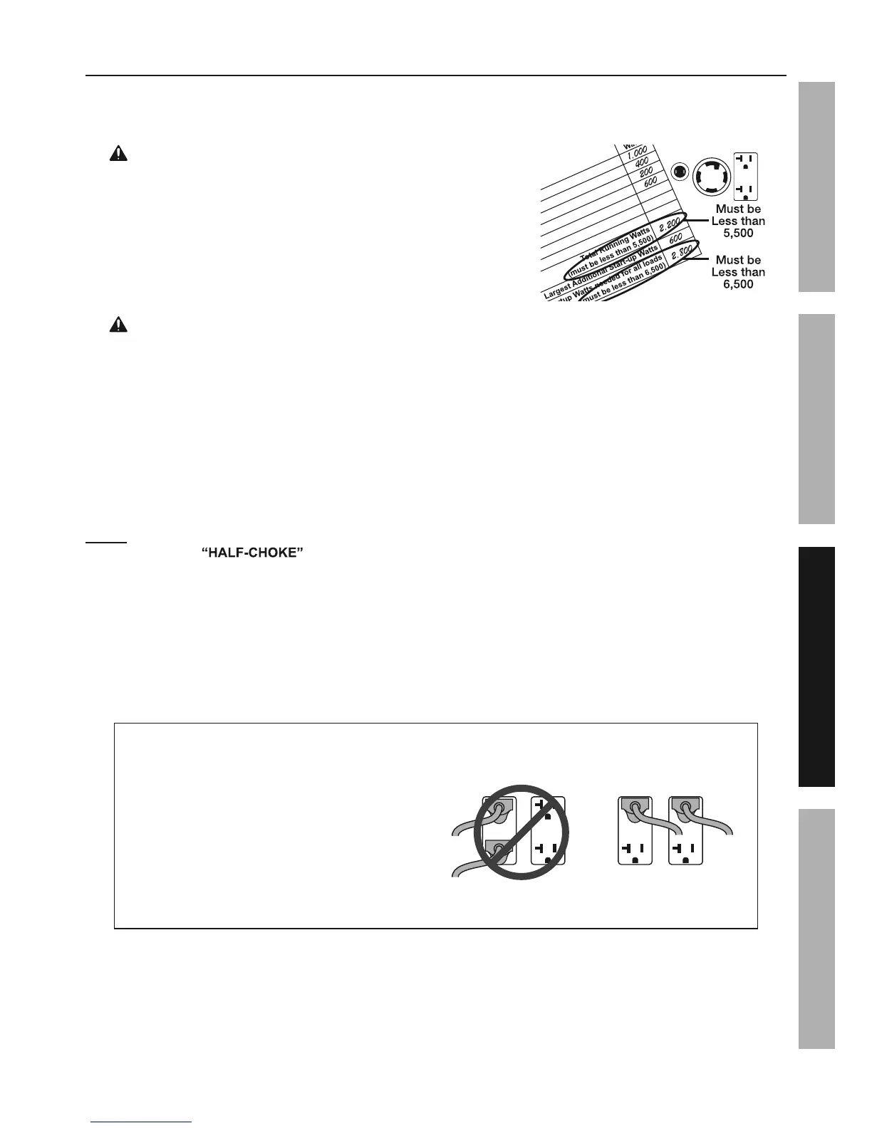 NOTE: If Engine speed or voltage fluctuates with a load below the Generator’s running wattage, move the Engine