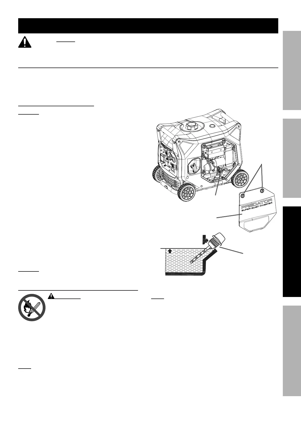 with exhaust pointed away. Inspect Engine and Generator looking for damaged, loose, and missing