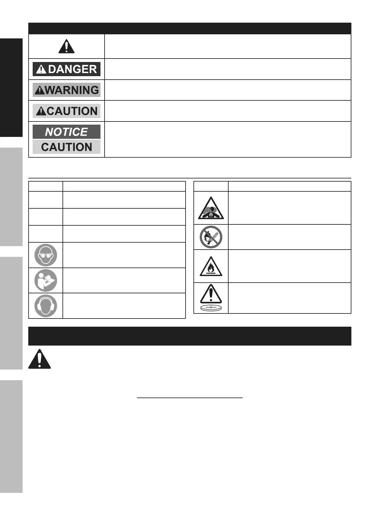WARNING SYMBOLS AND DEFINITIONS