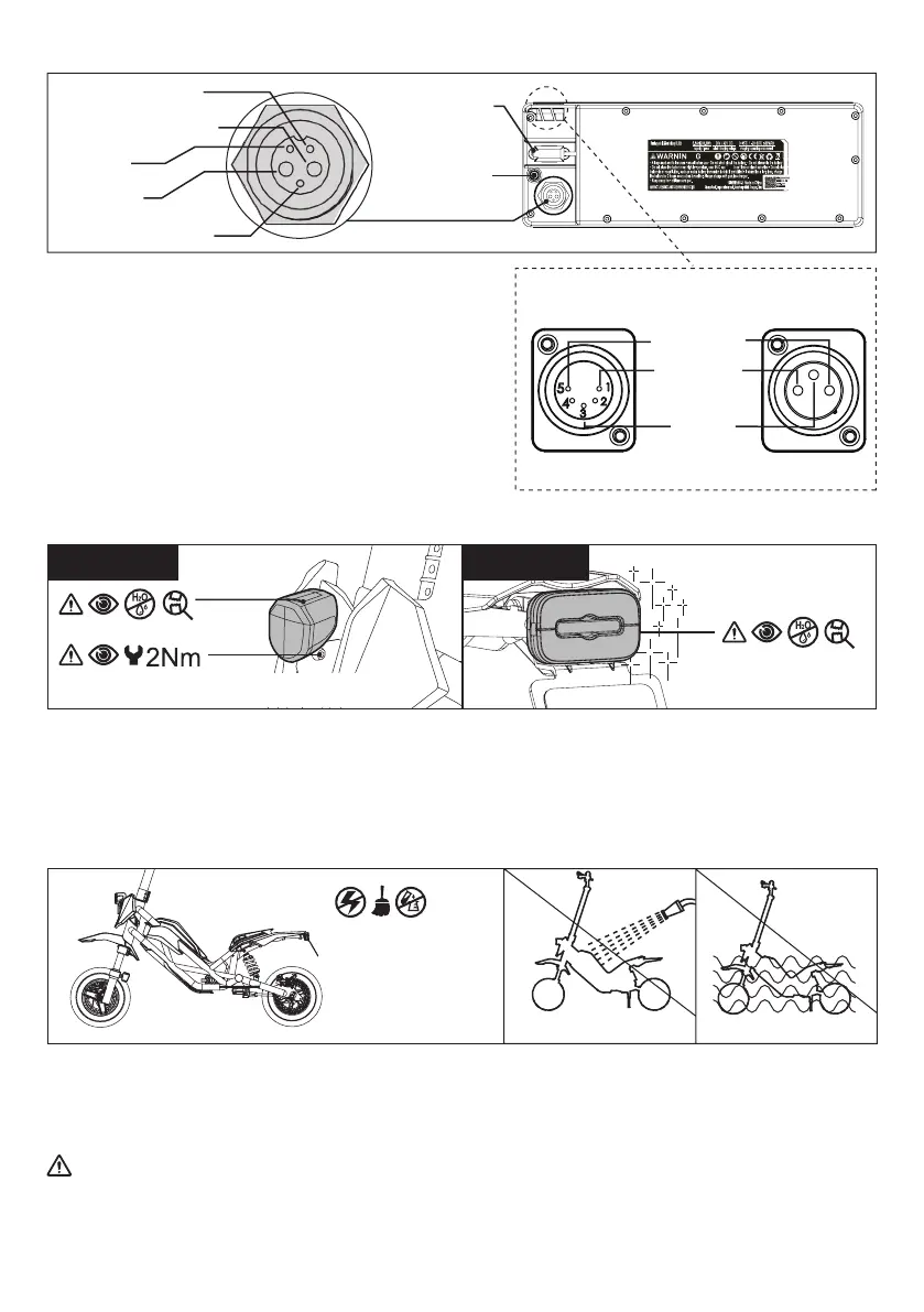 • Überprüfen Sie vor jeder Fahrt das Lampengehäuse auf Beschädigungen und stellen Sie sicher, dass