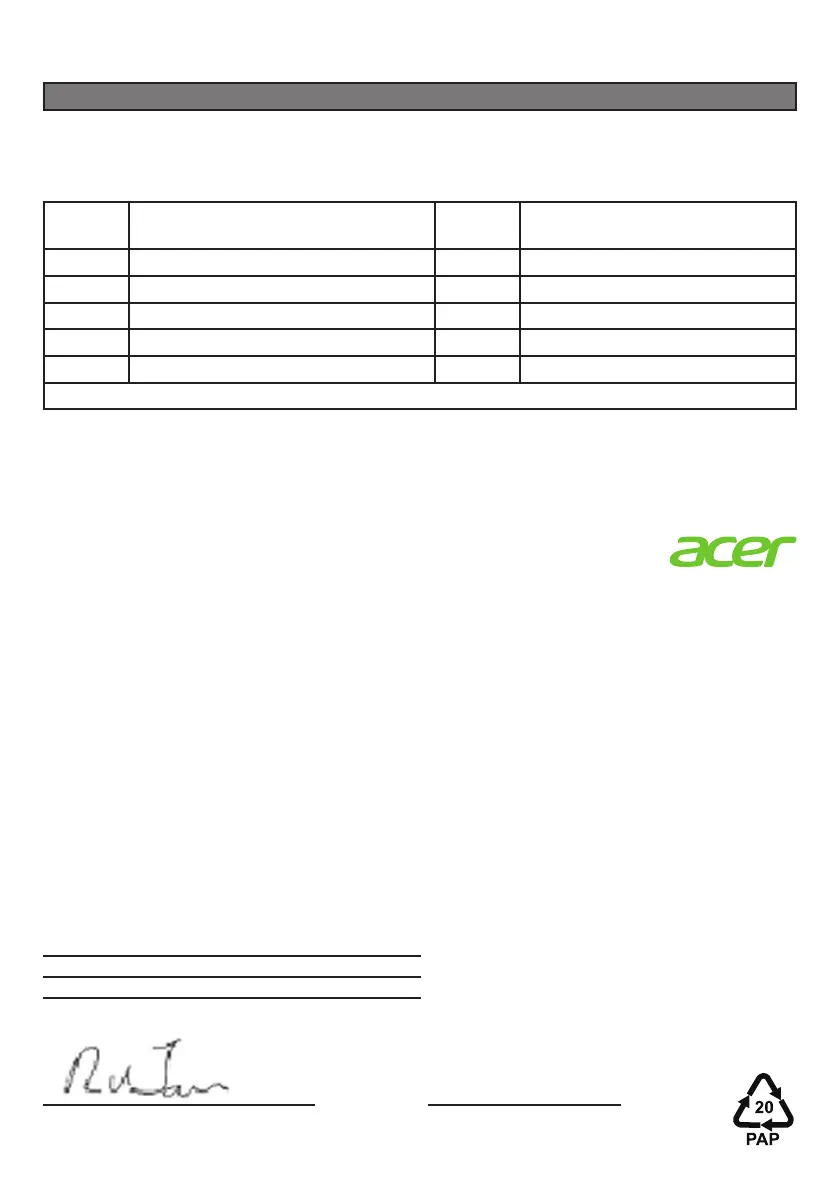 Por medio de la presente, Acer Incorporated declara, bajo su sola responsabilidad, que el producto