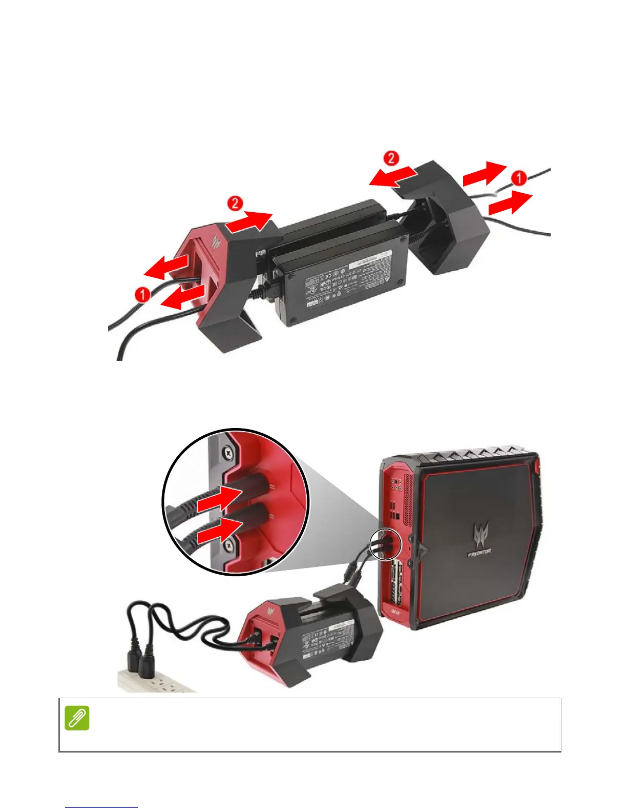 2.Plug the power cords into the DC-in jack 1 and 2 power connectors,