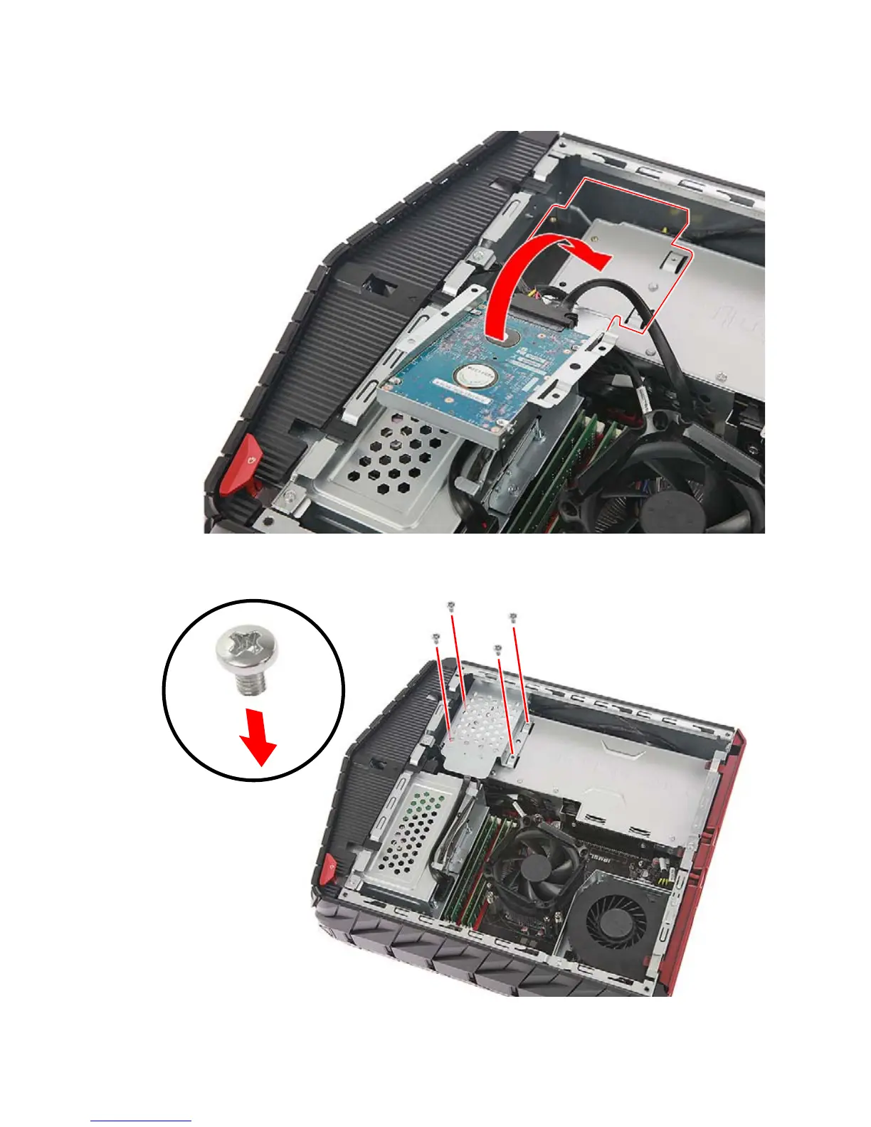 7.Secure the HDD bracket with four screws.
