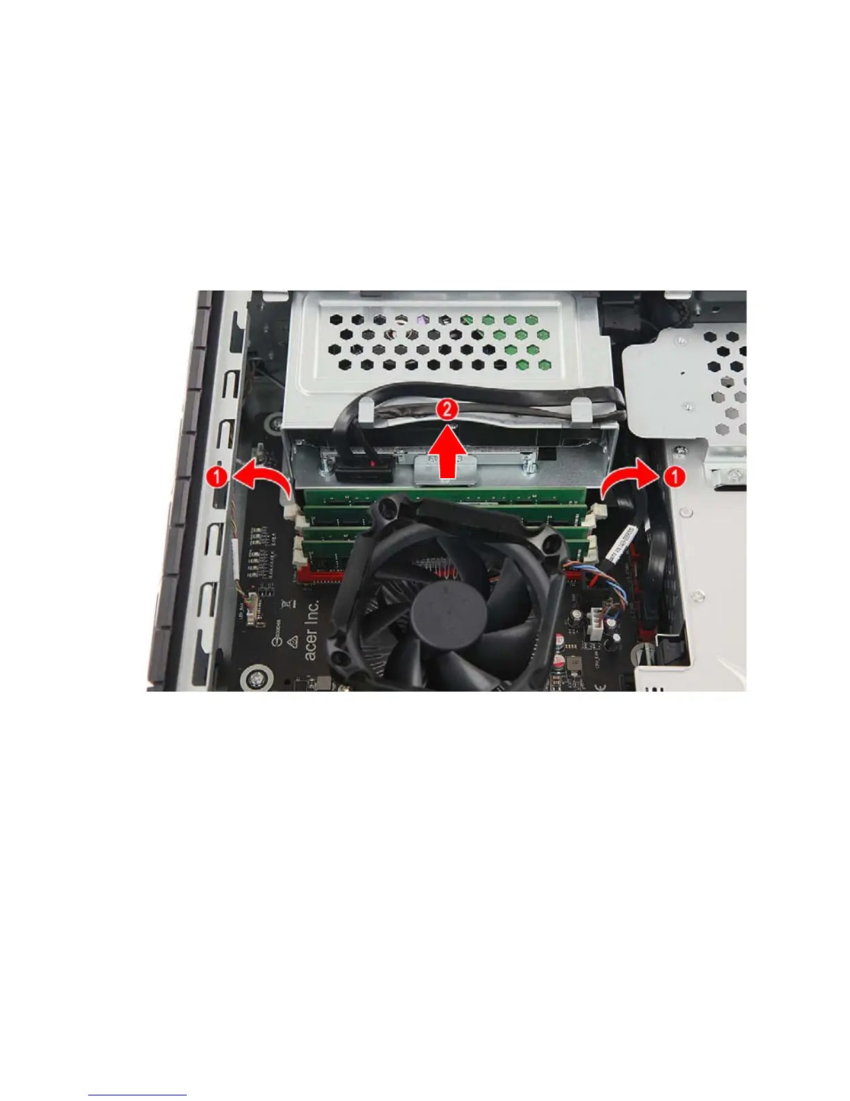 2.Press outward the holding clips on both sides of the DIMM slot