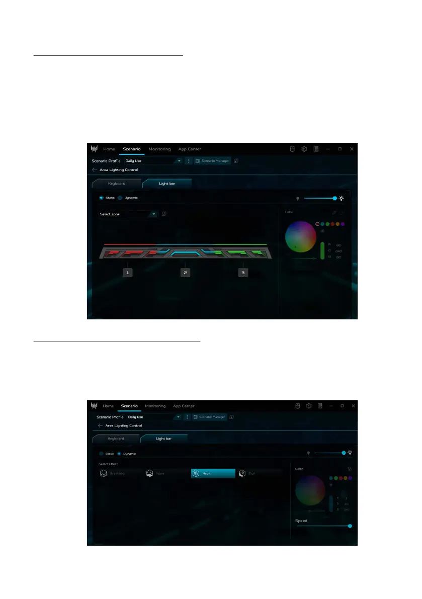 The colors of the light bar may be changed: select the zone