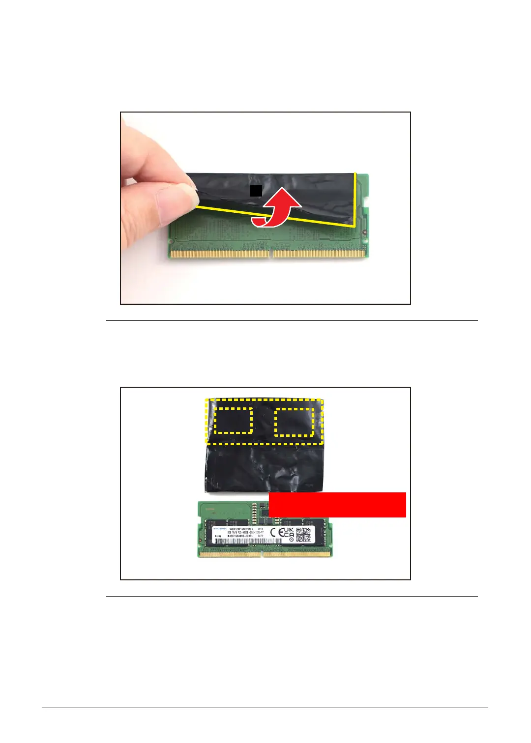 6. Detach the DIMM module from the adhesive graphite strip (marked with yellow