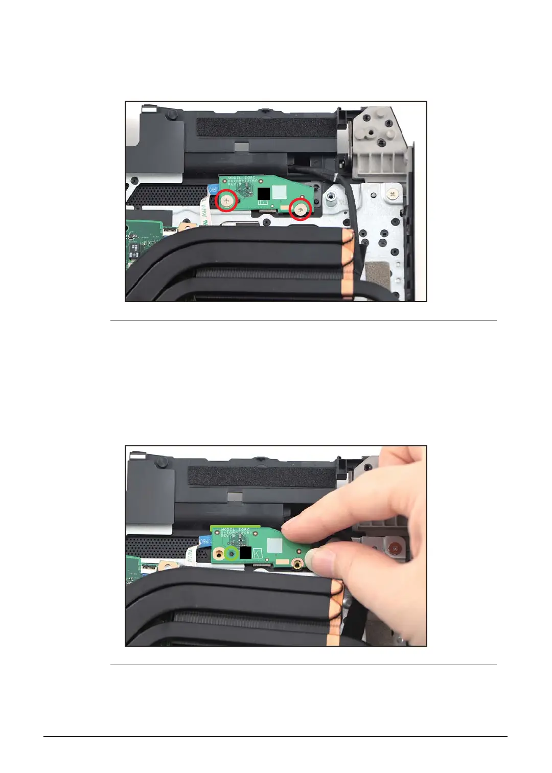 9. Release the turbo key board from the compartment stud (highlighted with the green