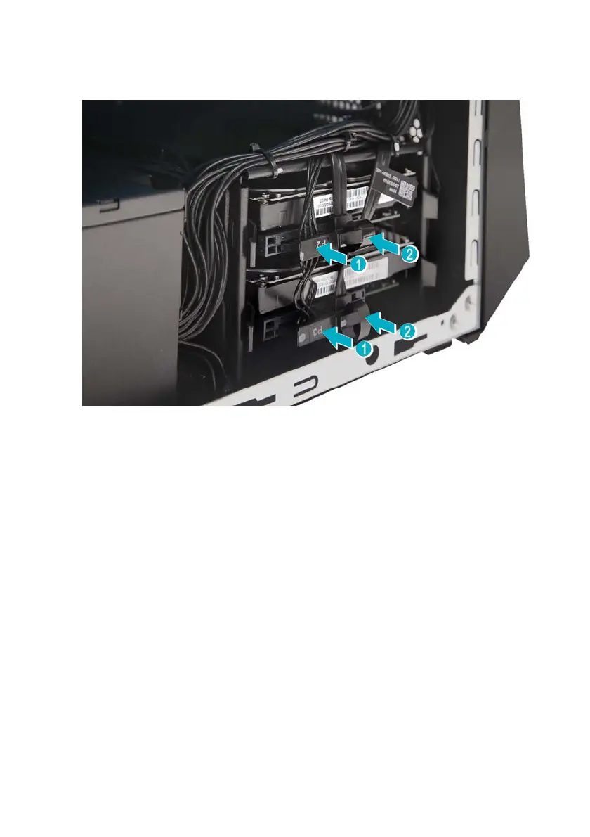 4. Connect the power and data cables to the hard drives.