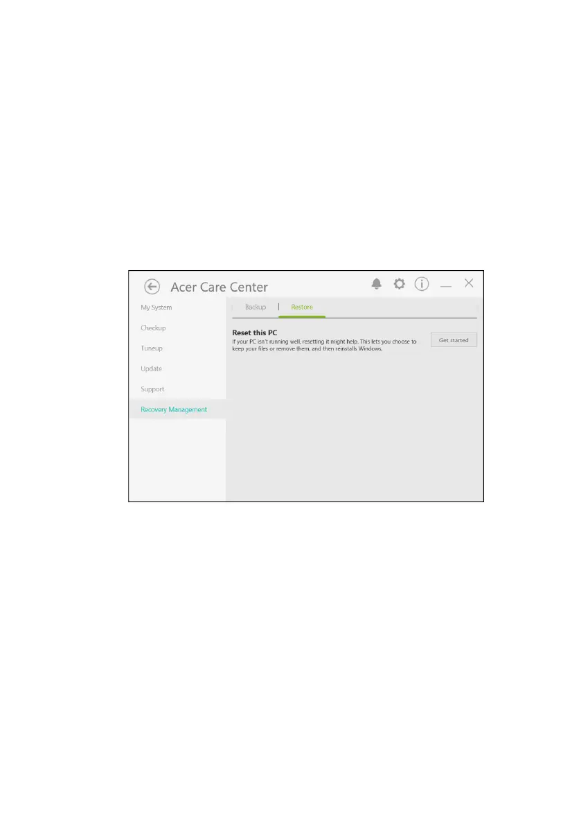 2. Select the Restore tab and click Get Started to open the