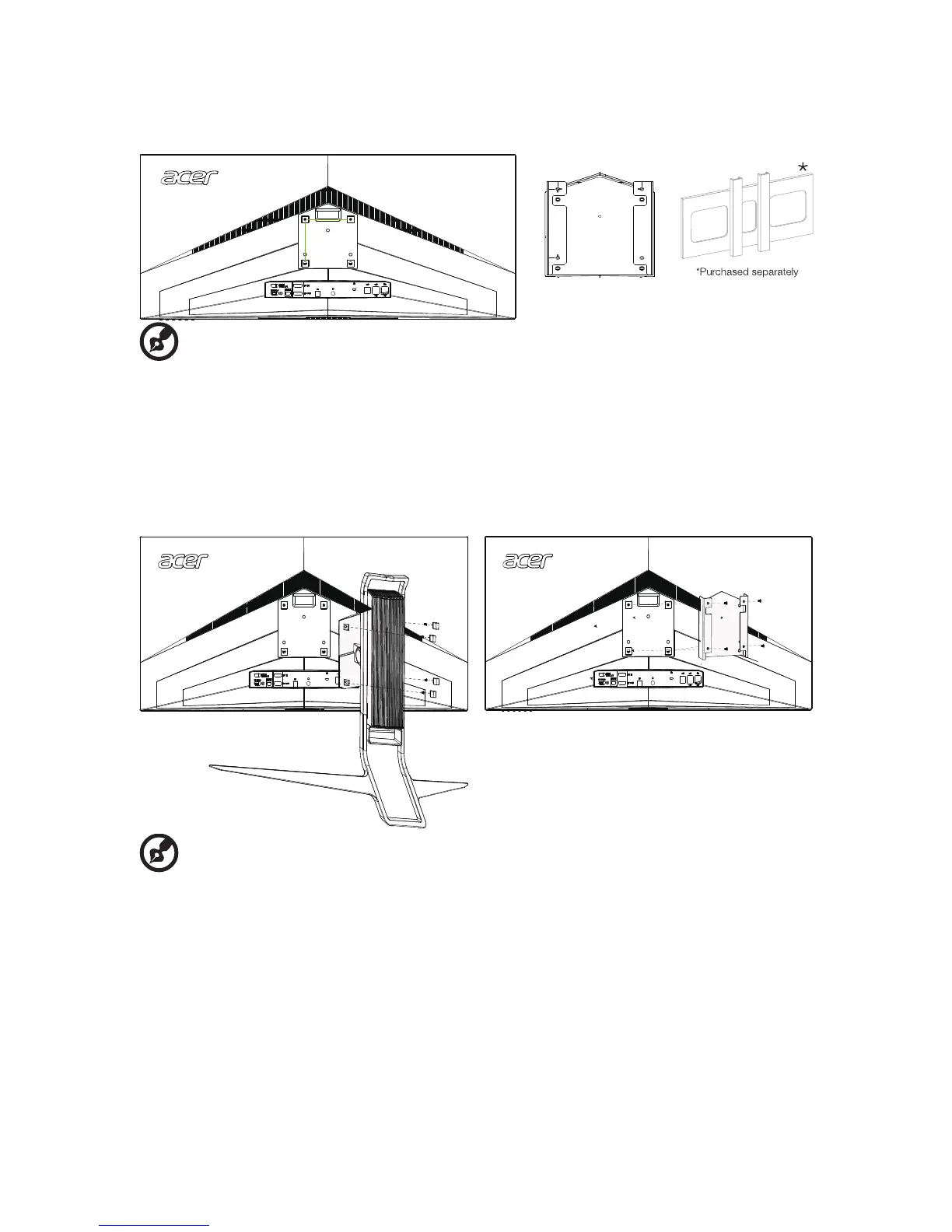 • This monitor supports the VESA industry standard 100 mm mounting holes.