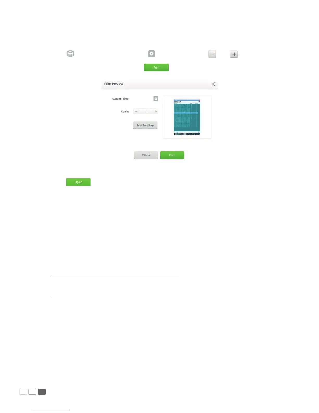 Click to open the preview page. Click to set the printer. Click and to set