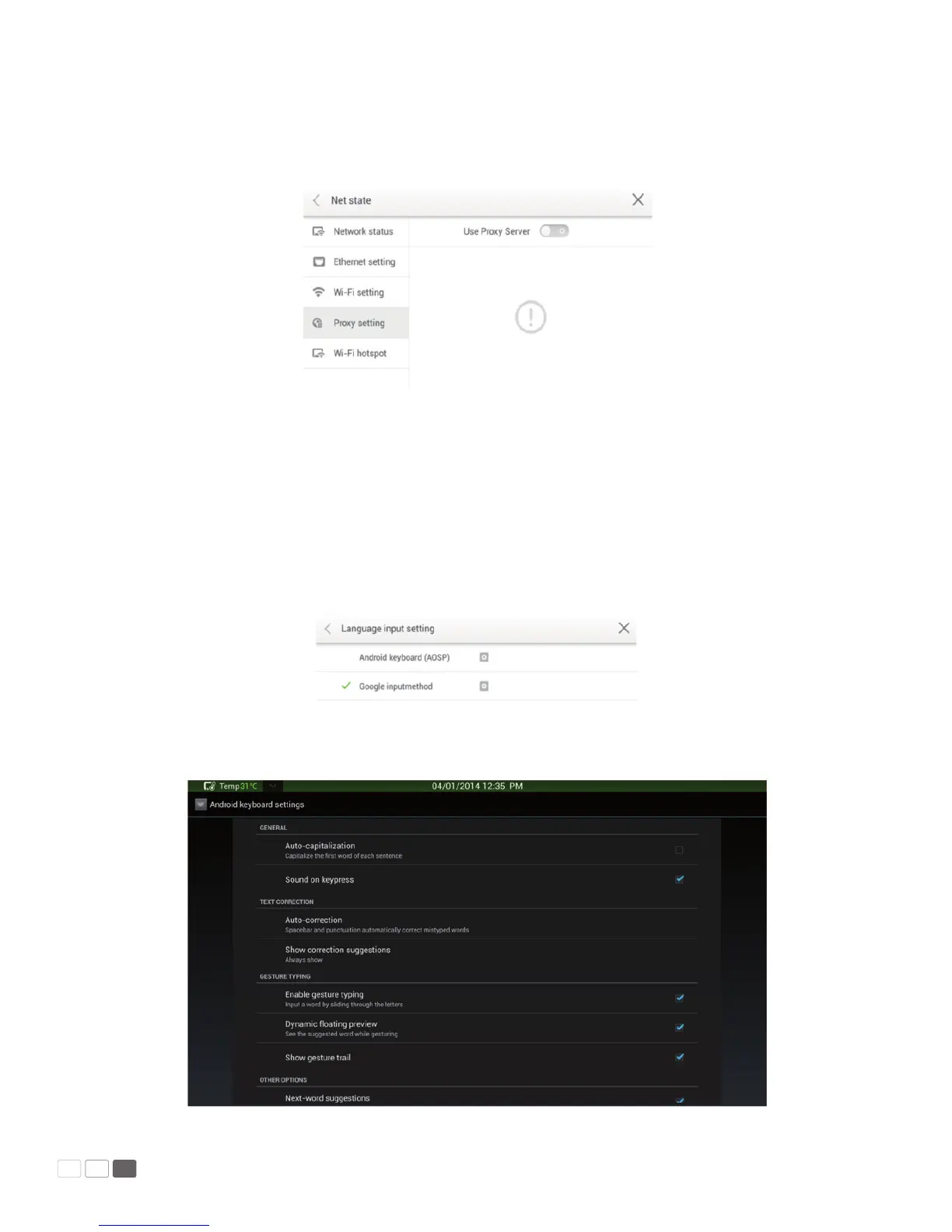 Click Input to show options including ASOP and Google Pinyin. You can choose an input method