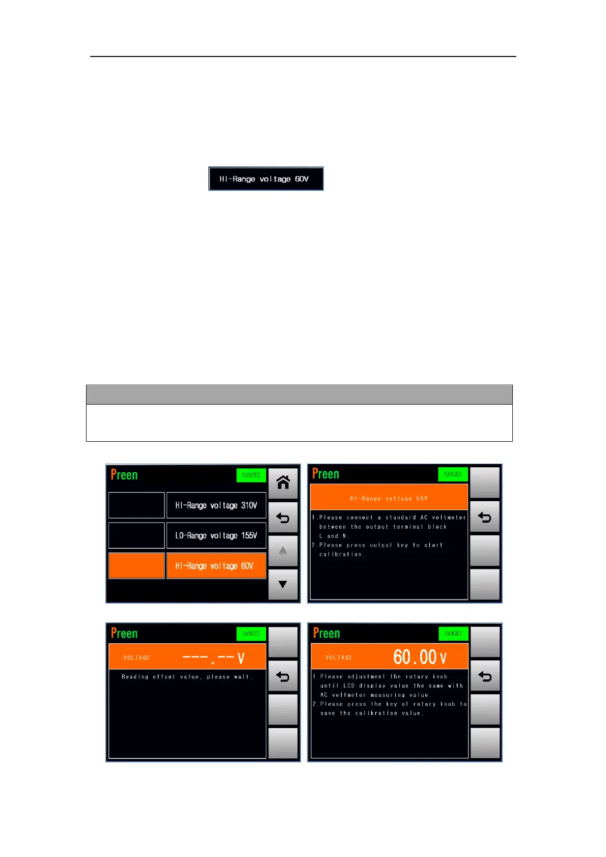the HI-Range voltage 60V. The procedures of calibrating the HI-Range voltage 60V are