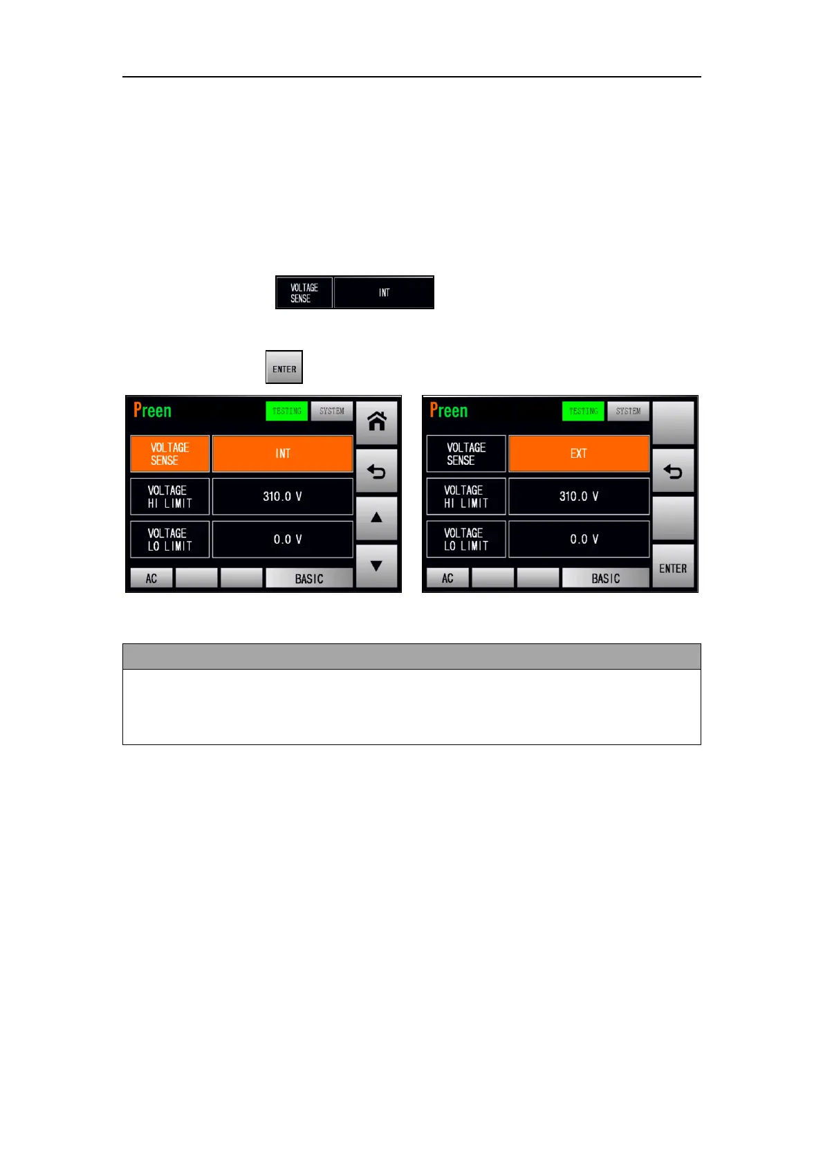 Figure 3.33 Set the voltmeter point from INT to EXT (BASIC mode)