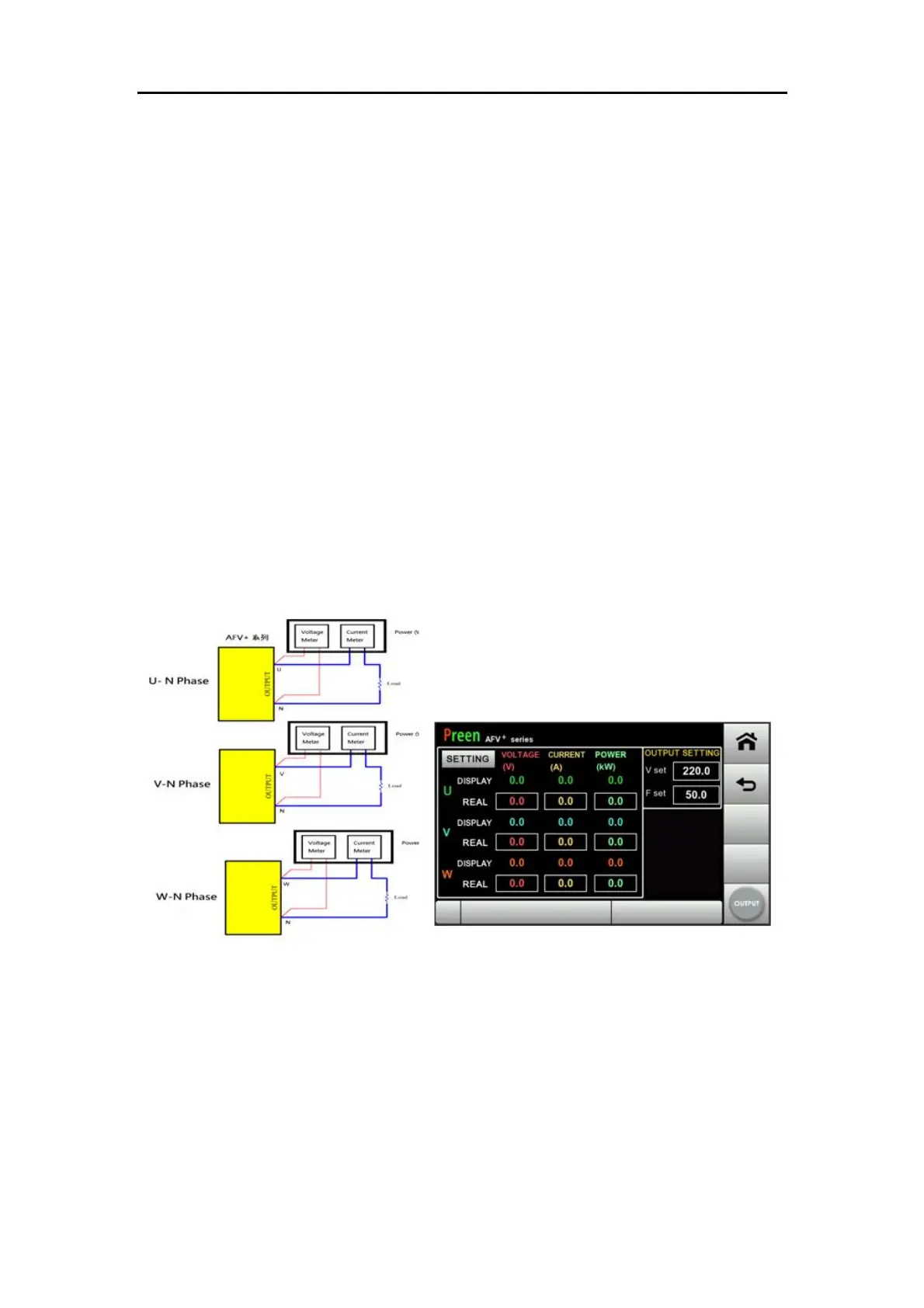 screen will display the output power value of each phase.