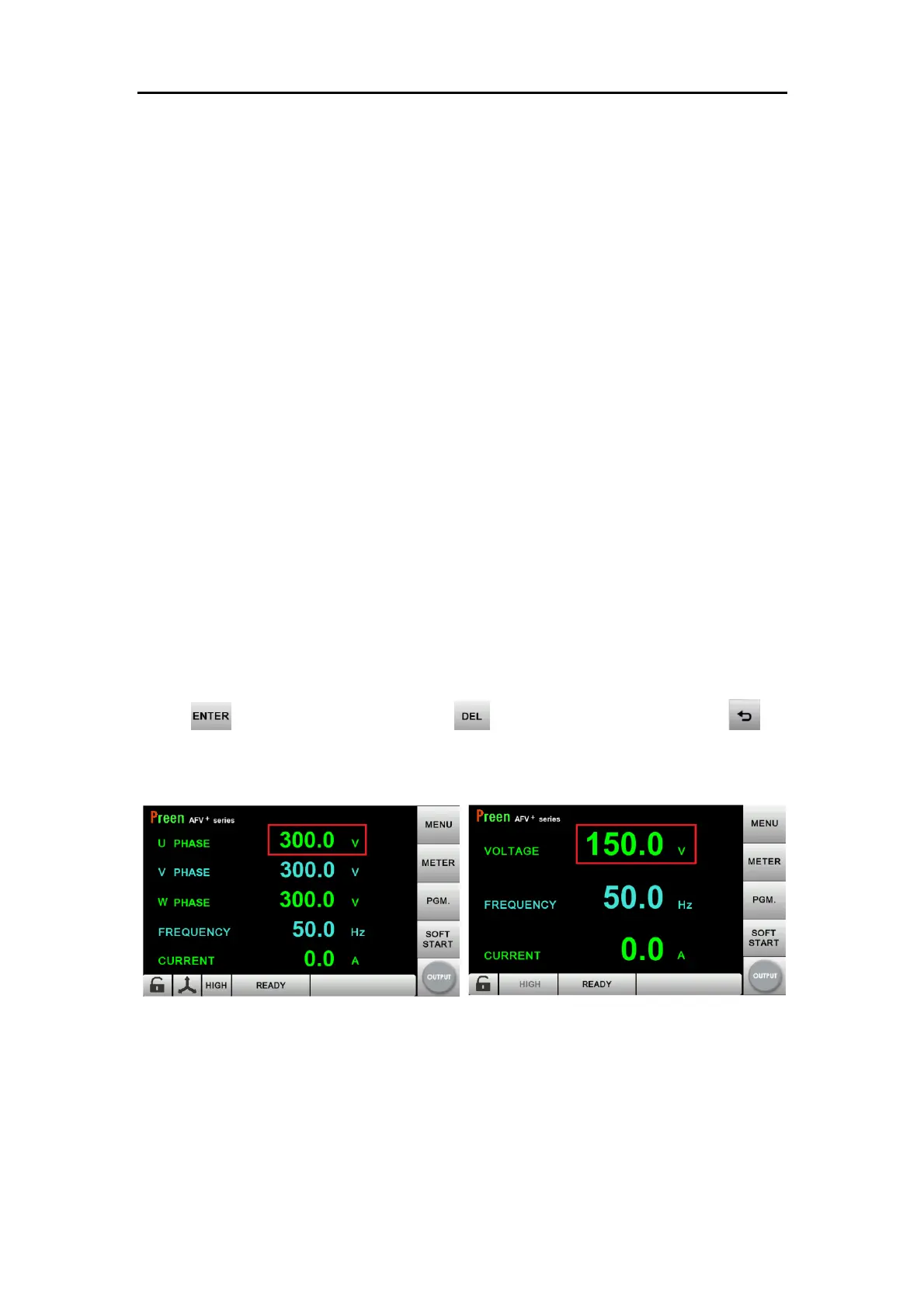 Figure 3.1 Press the value on the screen (left: three-phase, right: single-phase)