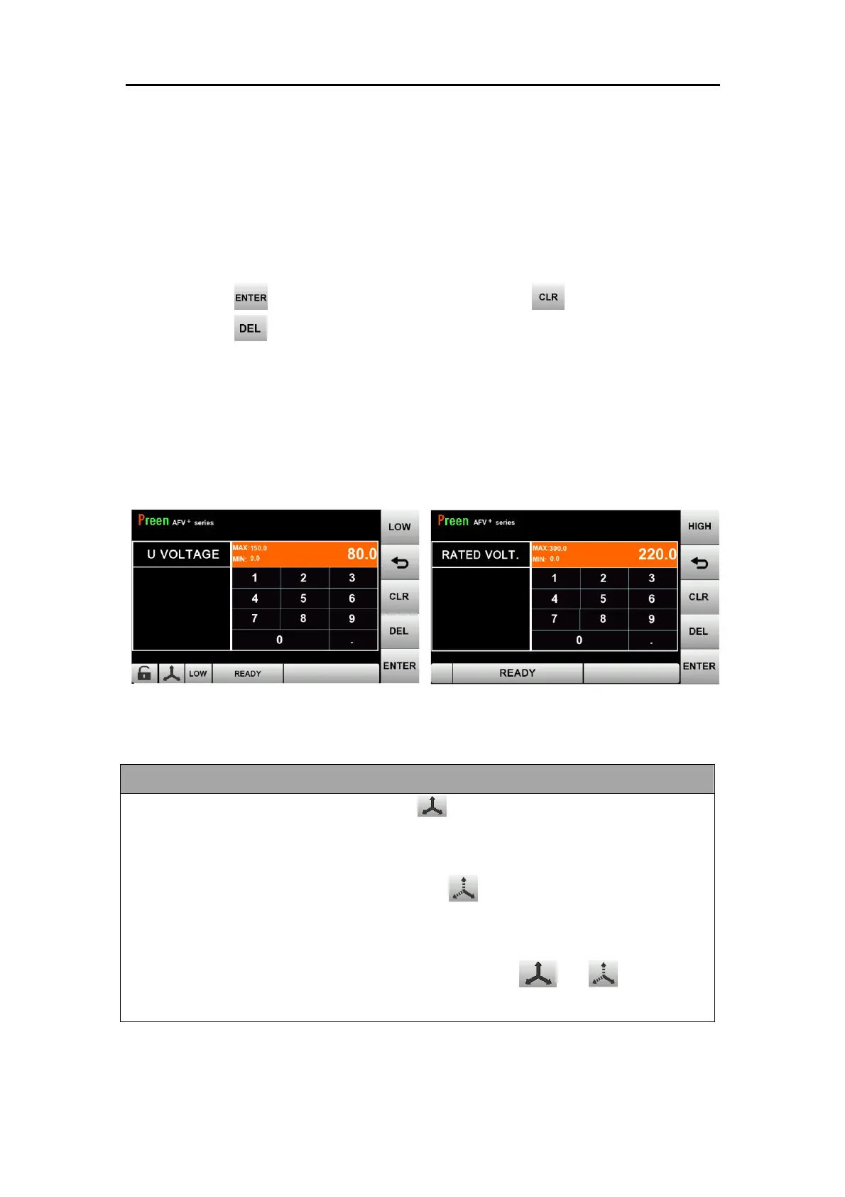 voltage. Press to confirm and finish setting. Press to clear all the input