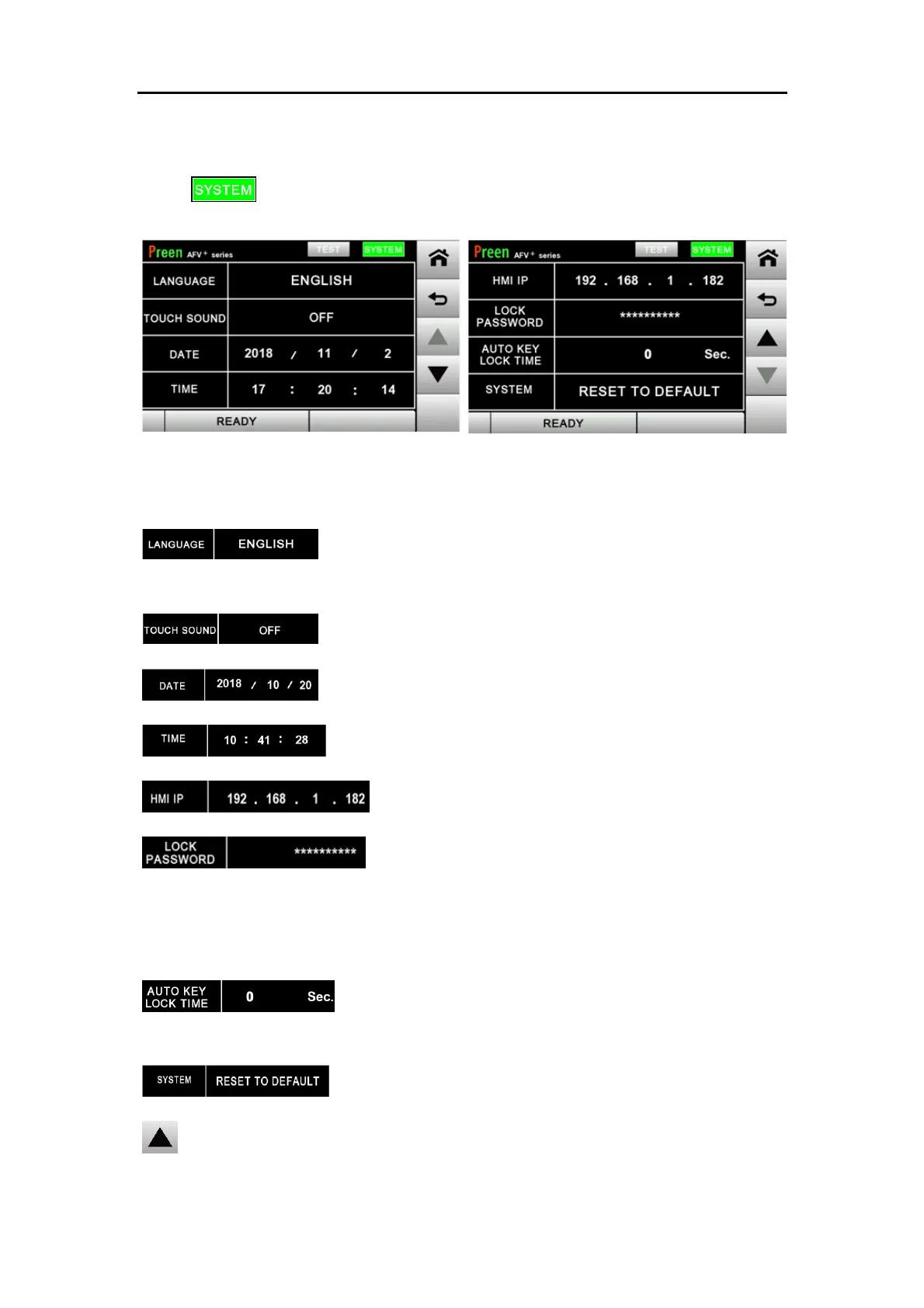 Press at SETTING page to enter into SYSTEM subpage. Refer to Figure 3.12
