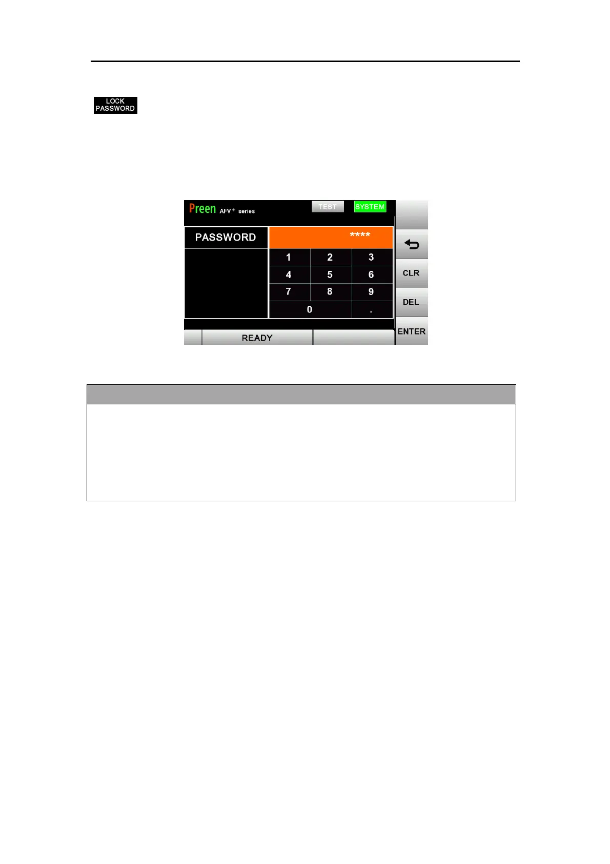 User can set the SCREEN LOCK function at SYSTEM subpage. When user set