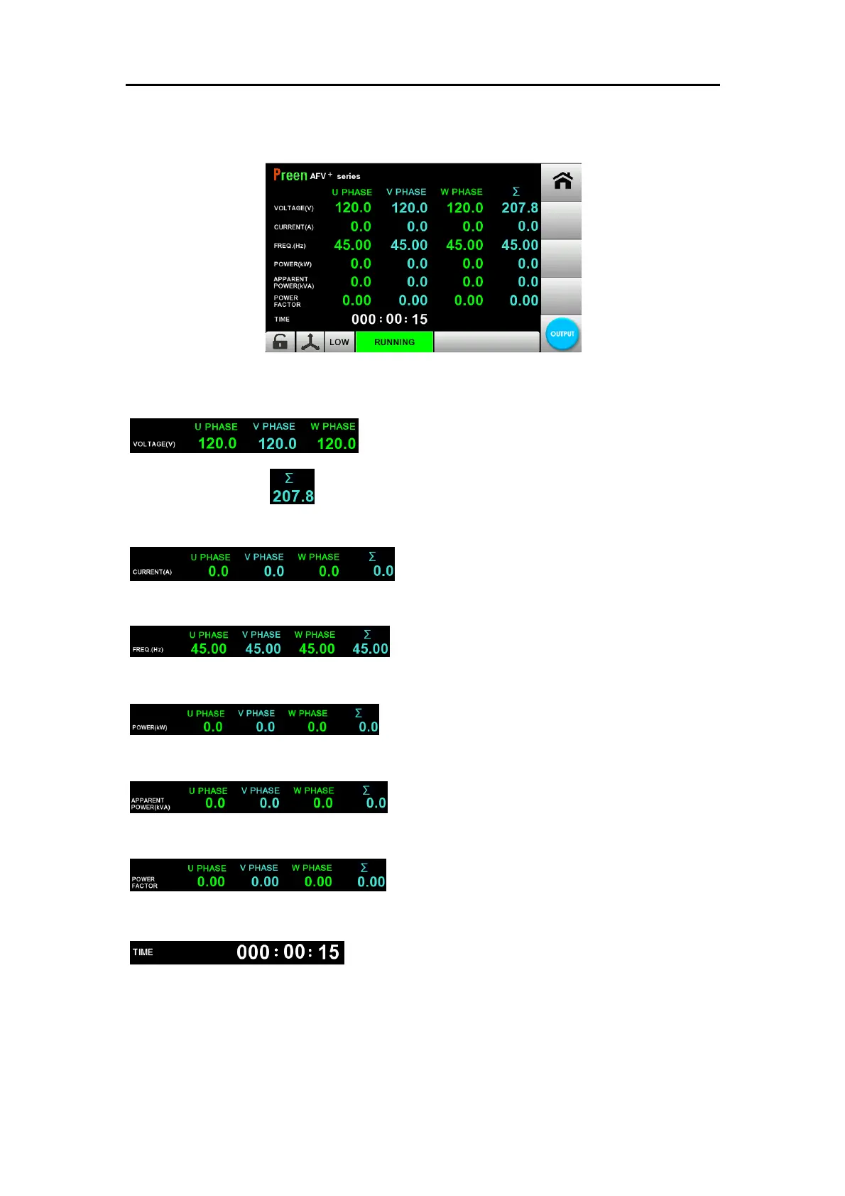 each phase in volts : Displays measurement of synchronized three-phase, for