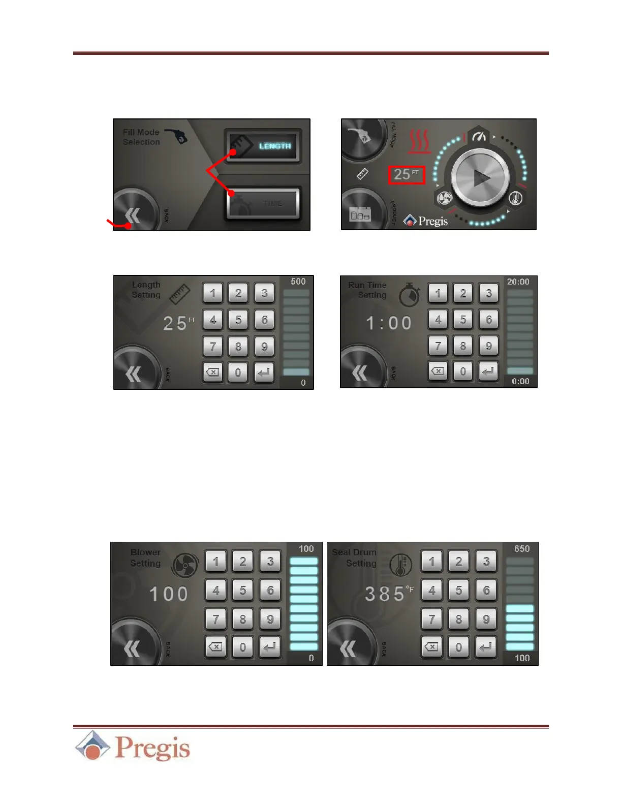 Pressing the Air Level button and Seal Temperature button opens the Blower Setting and Seal