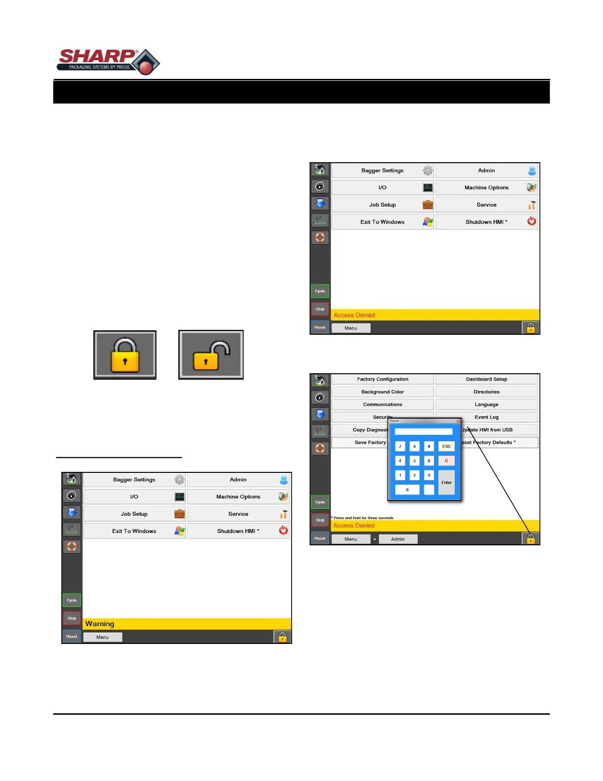1. Touch the padlock Icon and enter the designat-