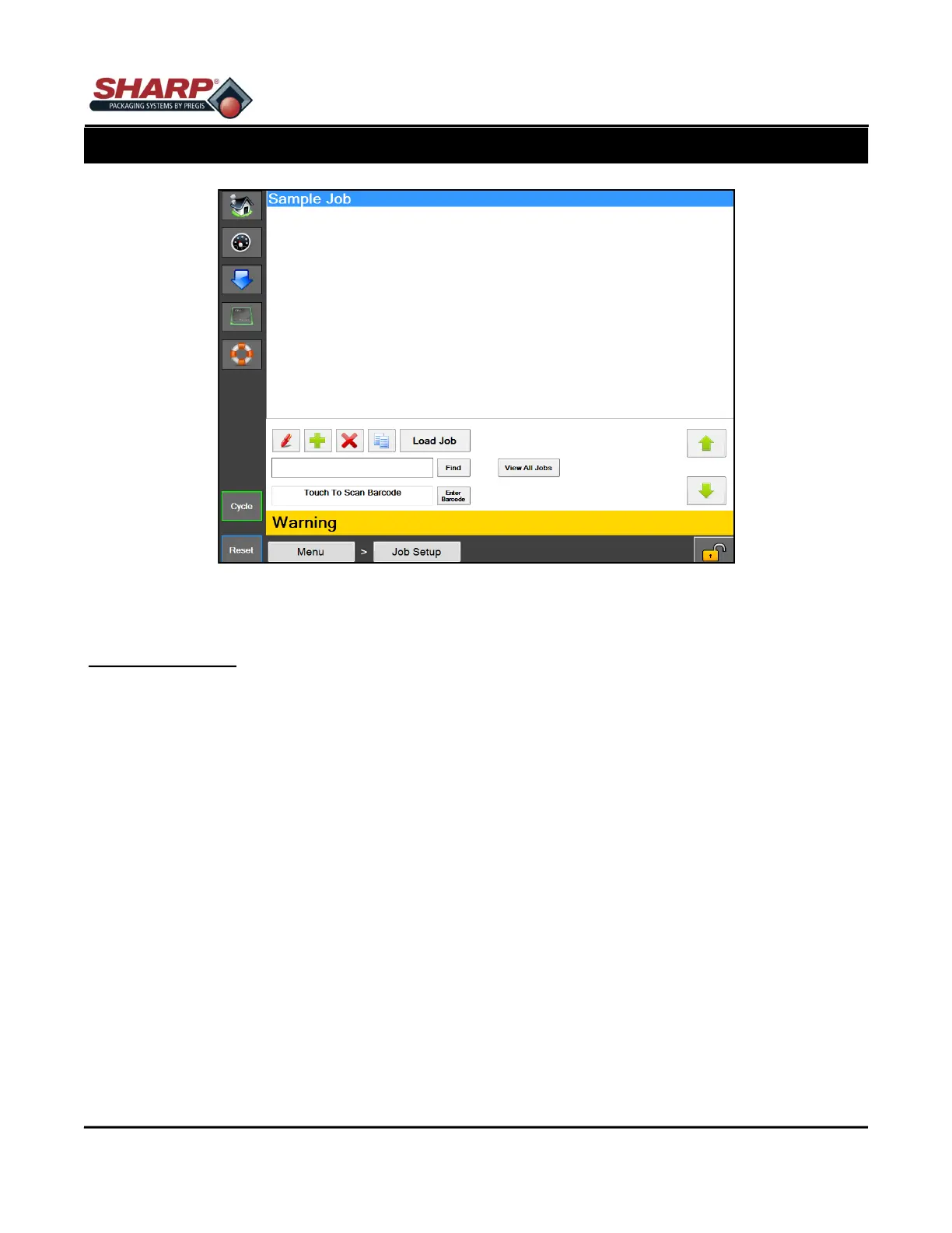 The Job Setup screen manages the machines predefined jobs.