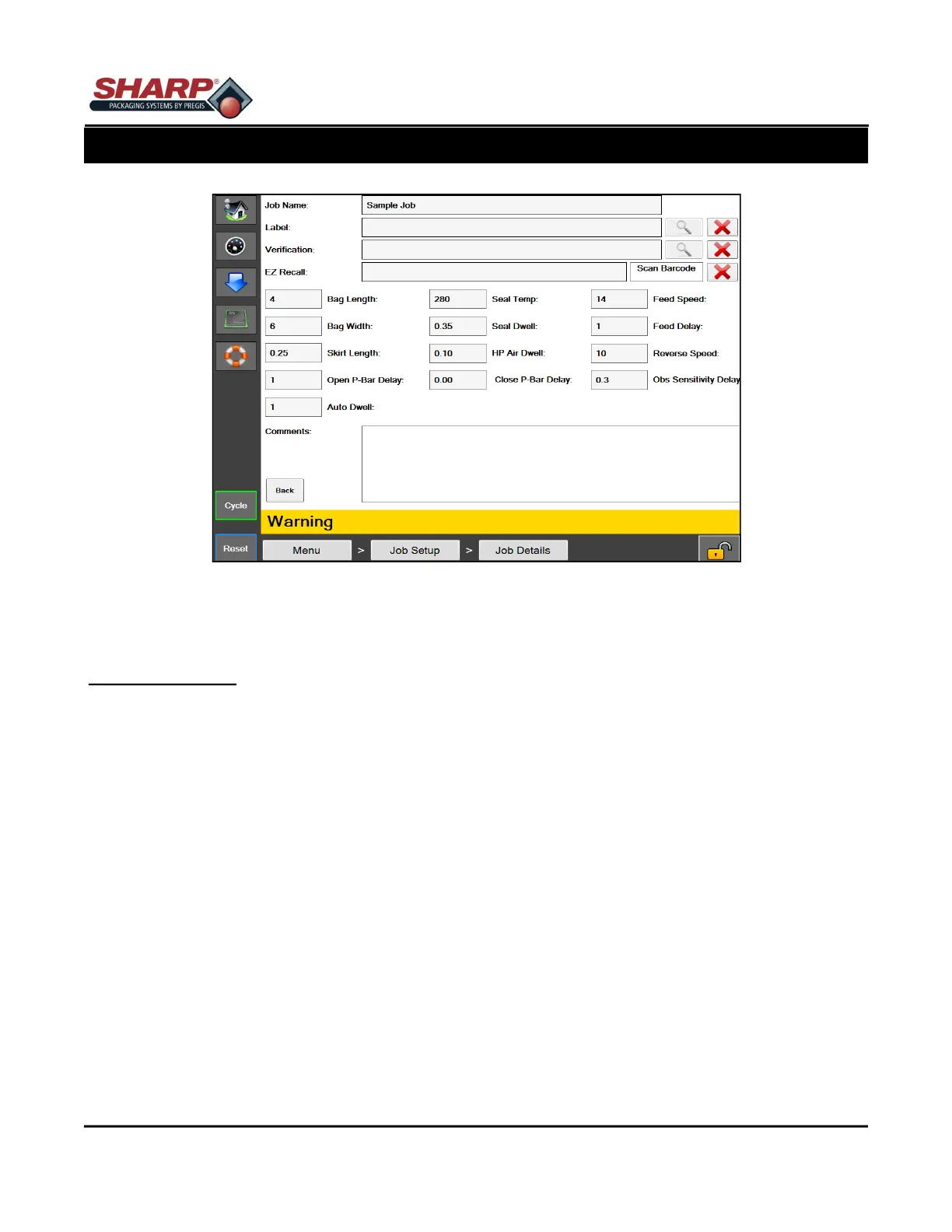 EZ Recall - This barcode value can be used to recall the job. On the Job Setup screen, a user can scan a bar-