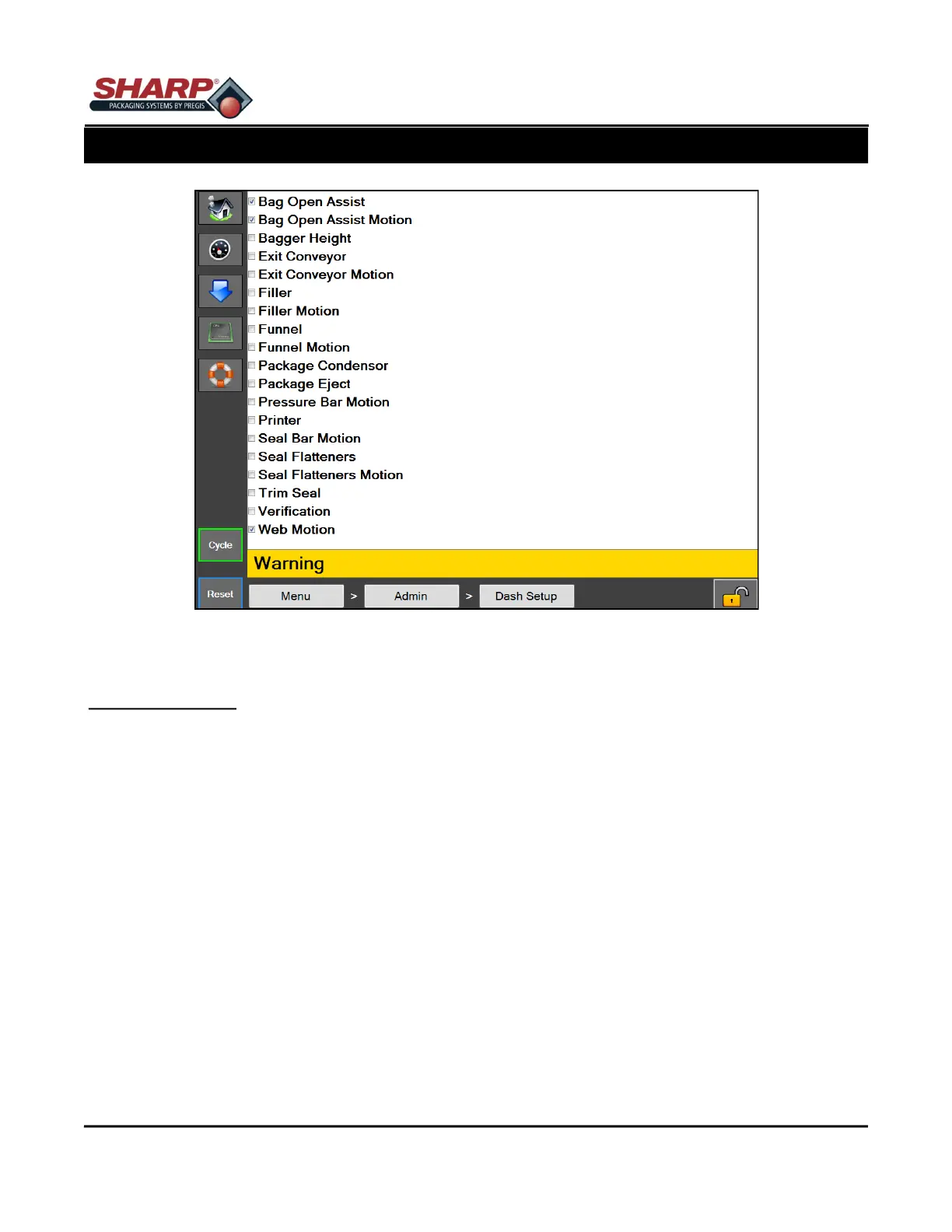 Figure 4-10A. Dashboard Setup Screen.