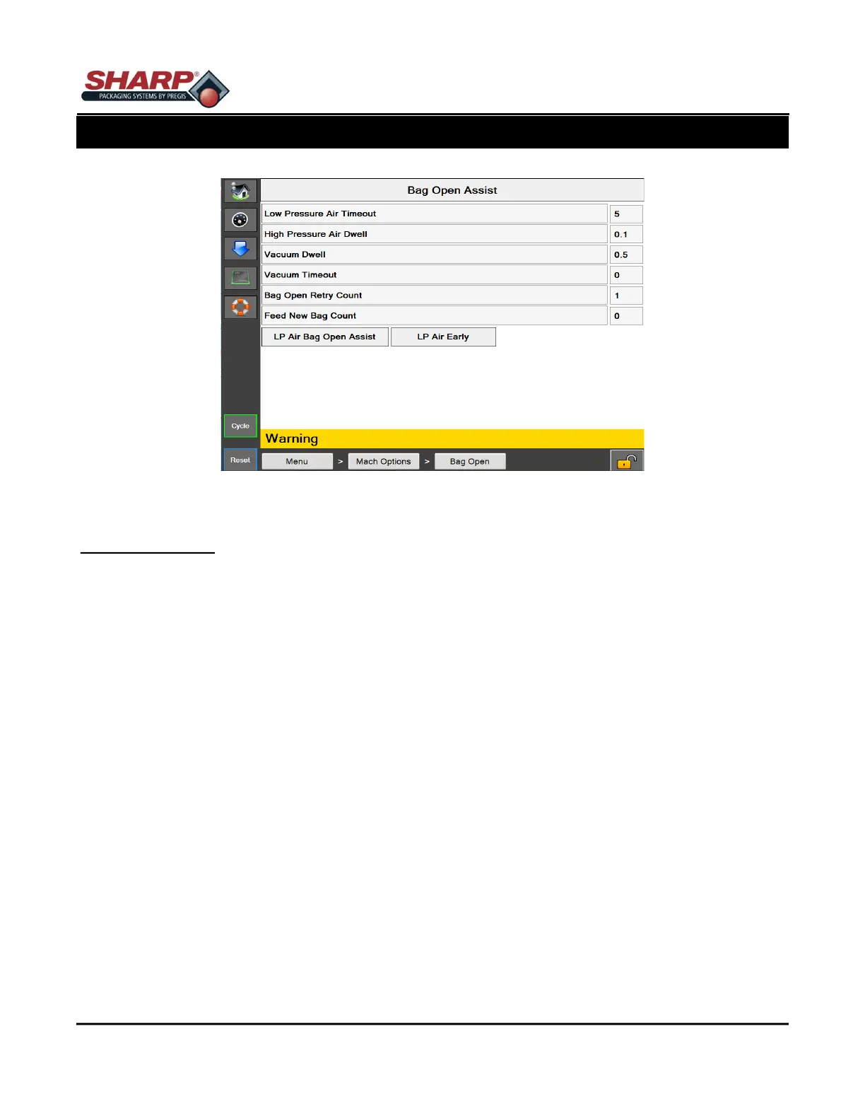 LP Air Early - This feature turns on the LPA at the beginning of the bag feed instead of the end of feed.