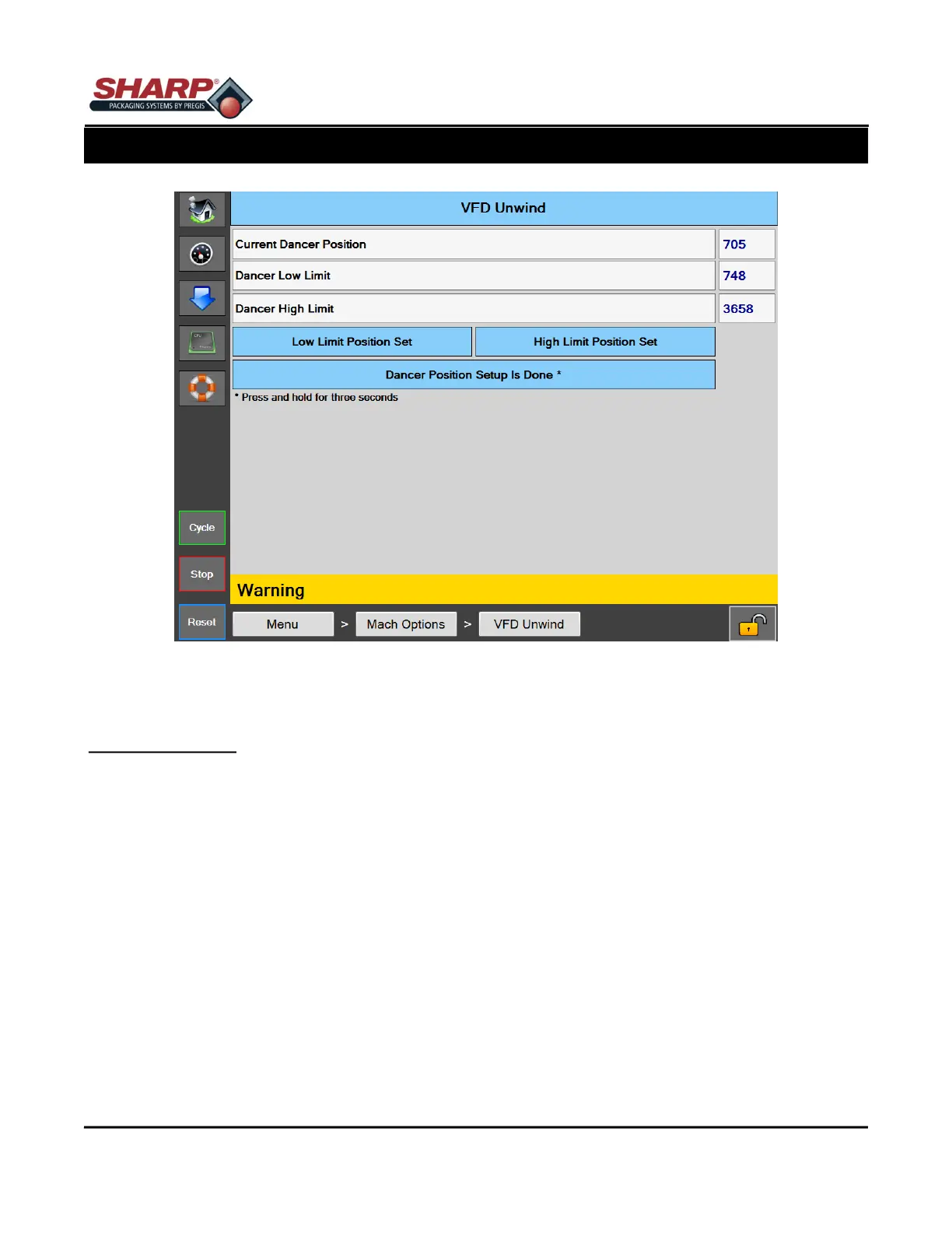 The VFD Unwind Option screen is used to setup the Dancer Feedback positions.