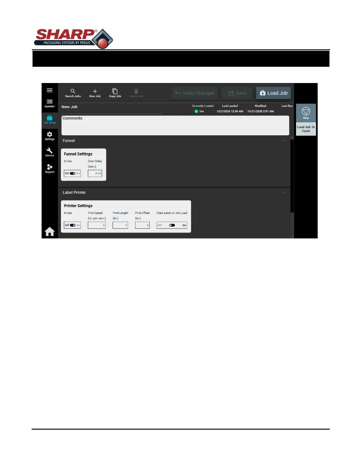 Any changes made to this screen requires operator to press ‘Load Job’ or ‘Save & Load’ button.