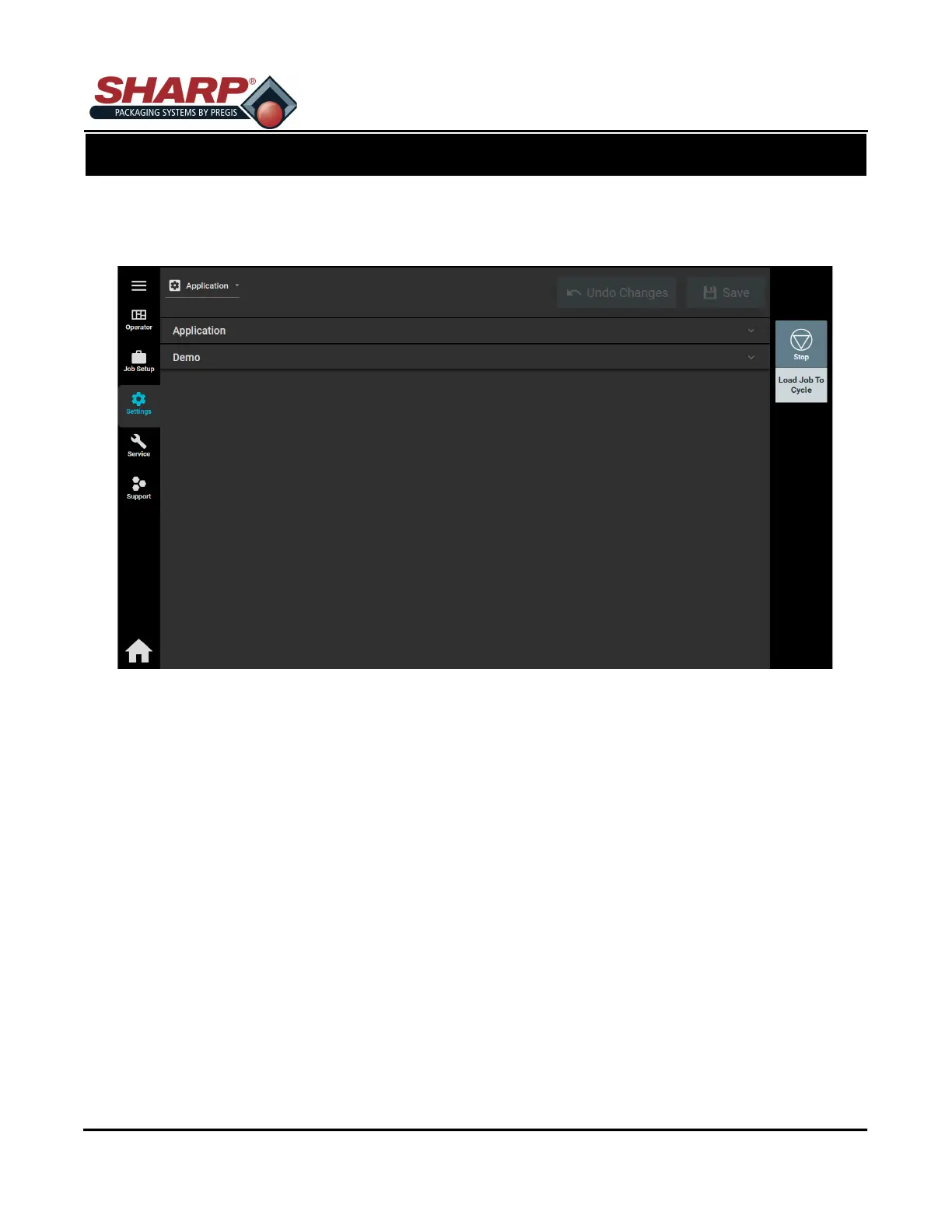 Application - This allows a User to select HMI Language and to activate Demo Mode.