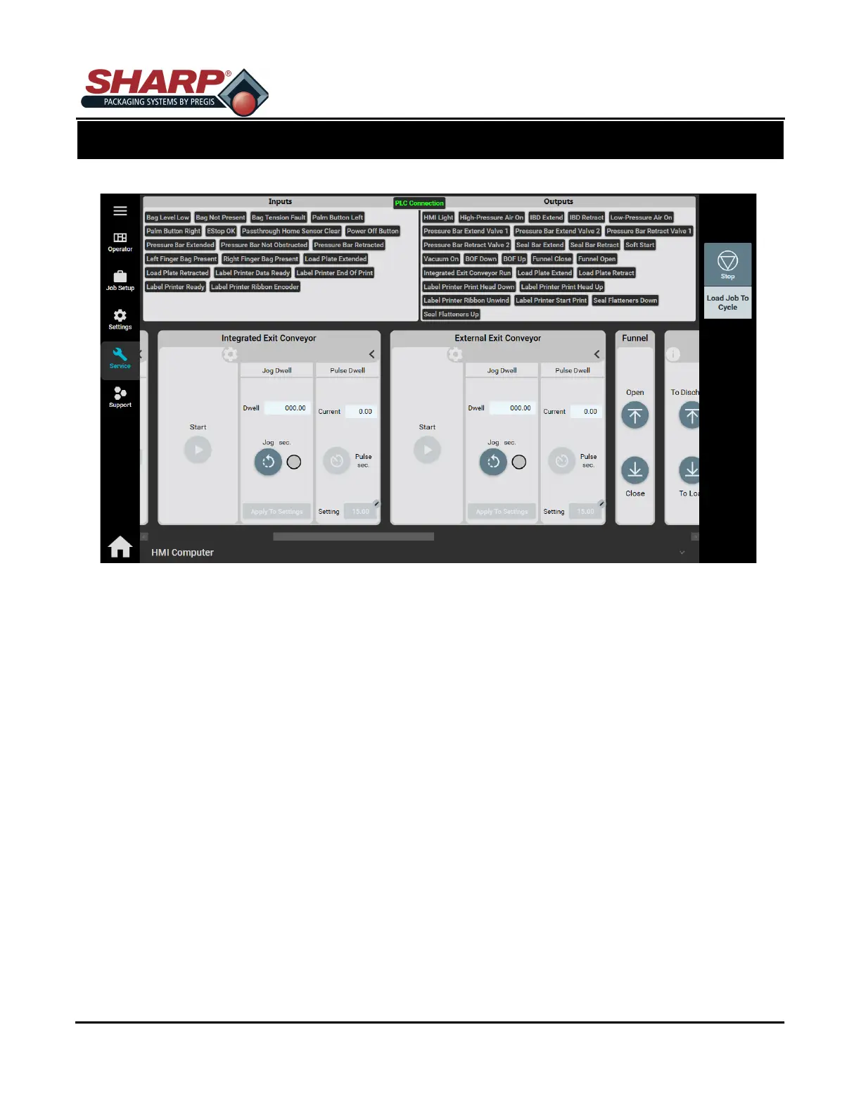 SERVICE SCREEN - INTEGRATED EXIT CONVEYOR.