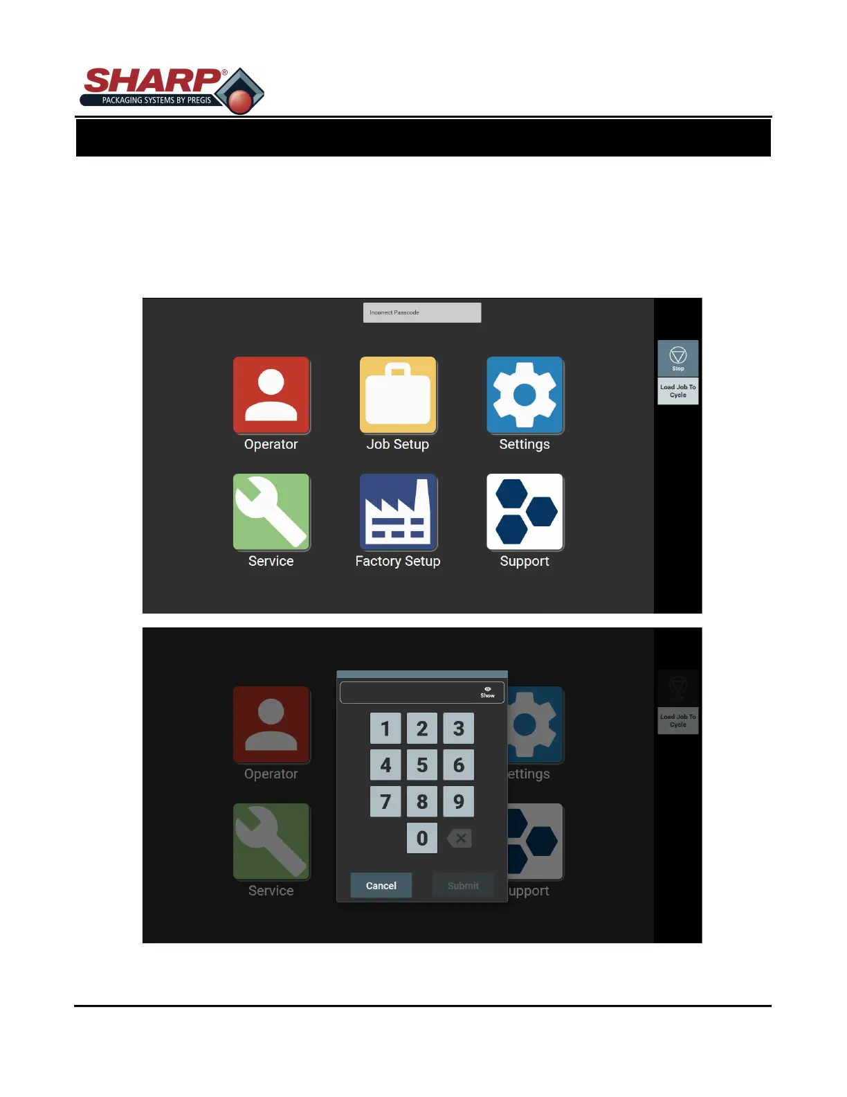 The ‘Operator’ and ‘Support’ icons are not password protected.