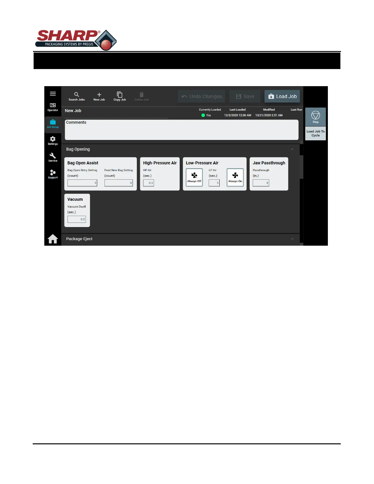 Any changes made to this screen requires operator to press ‘Load Job’ button.