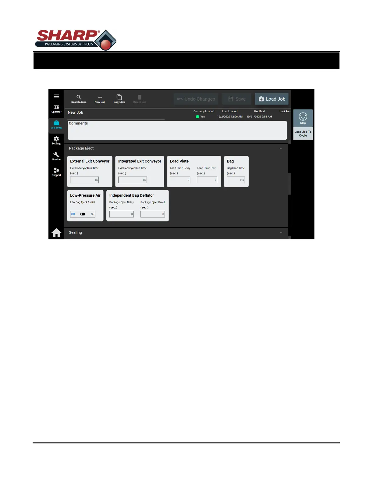 Any changes made to this screen requires operator to press ‘Load Job’ button.