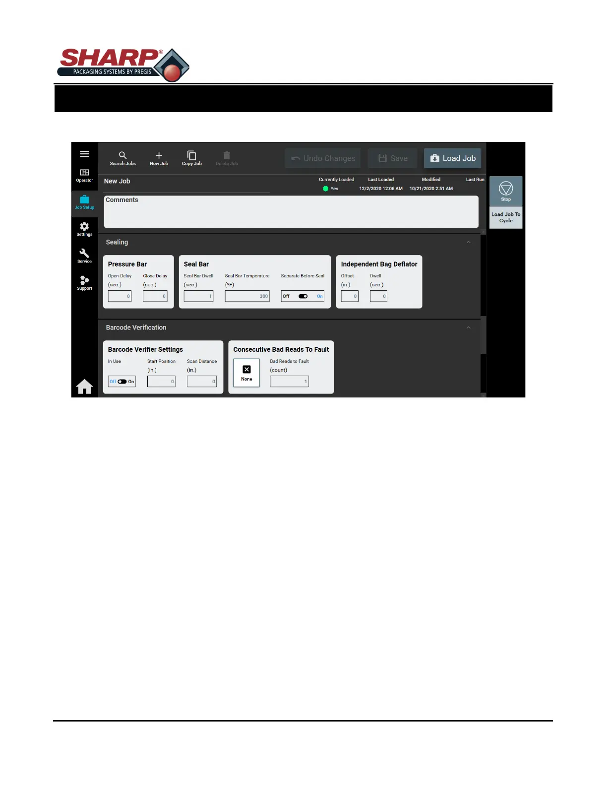 Any changes made to this screen requires operator to press ‘Load Job’ button.