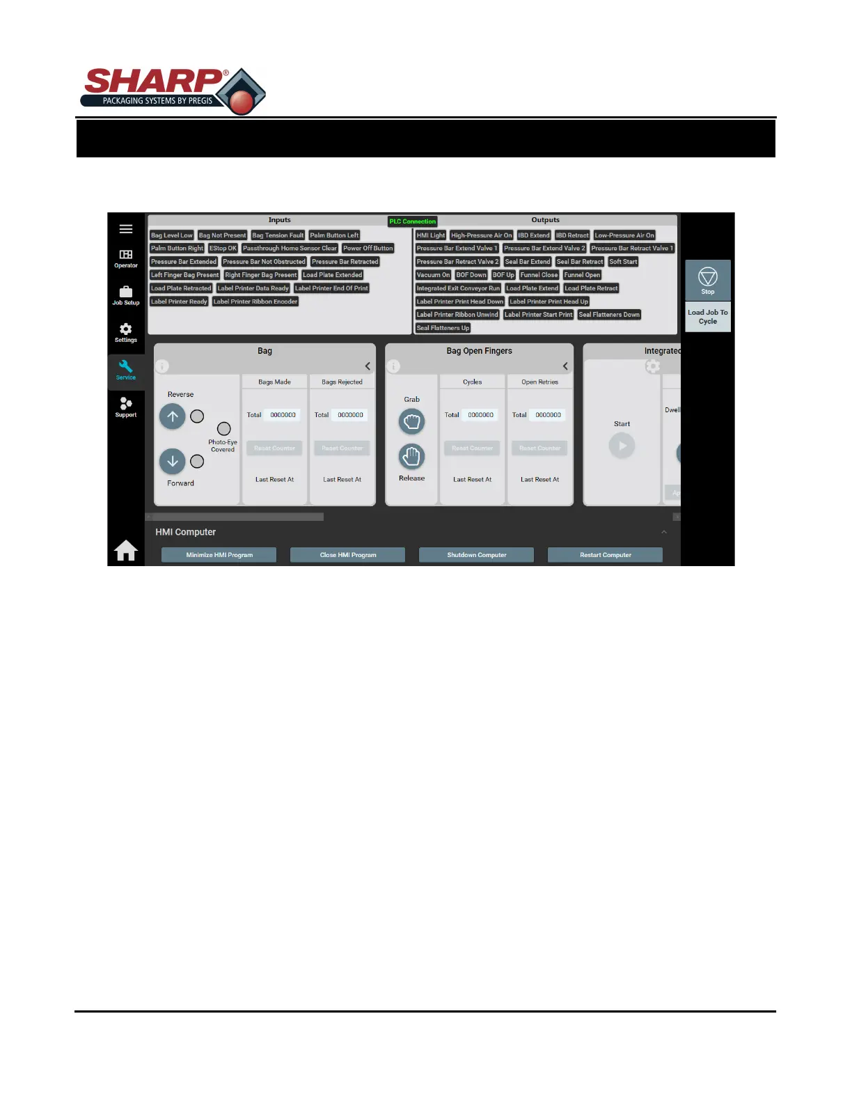 SERVICE SCREEN - BAG OPEN FINGERS