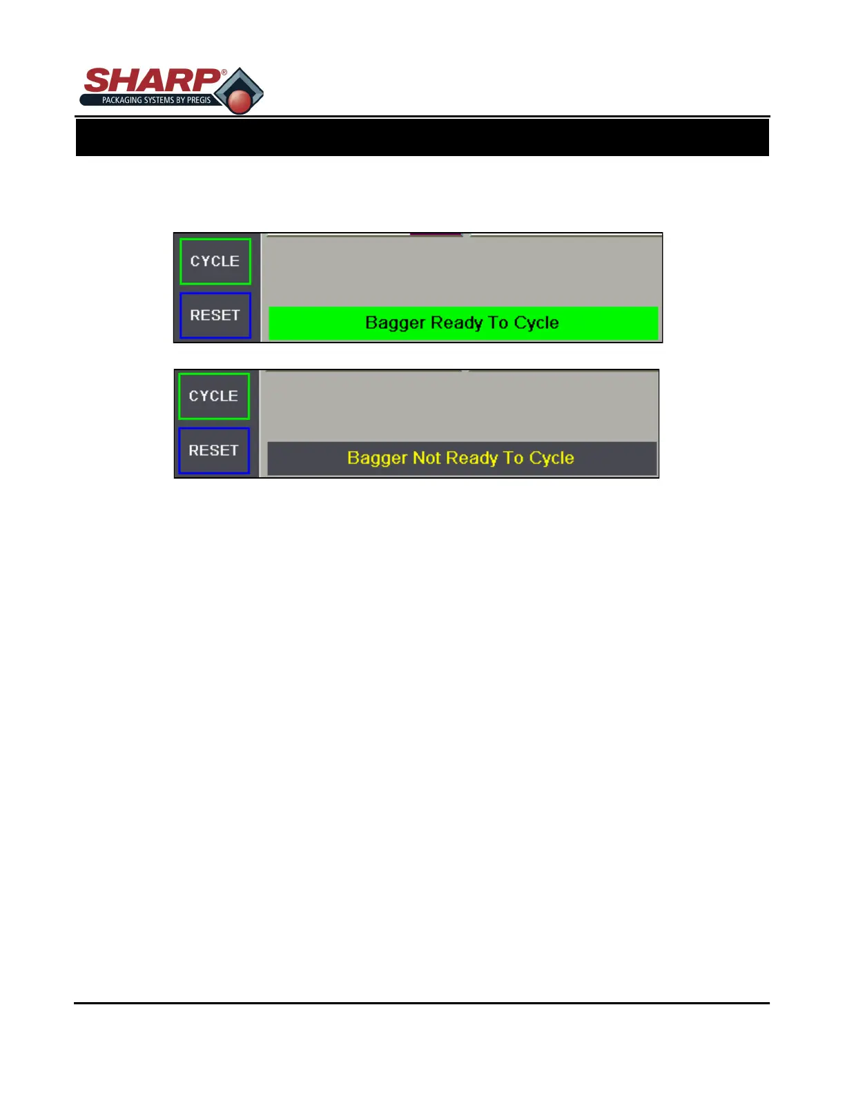 Pressing the “CYCLE” momentary pushbutton will initiate a bagger cycle if “Ready To Cycle” message is