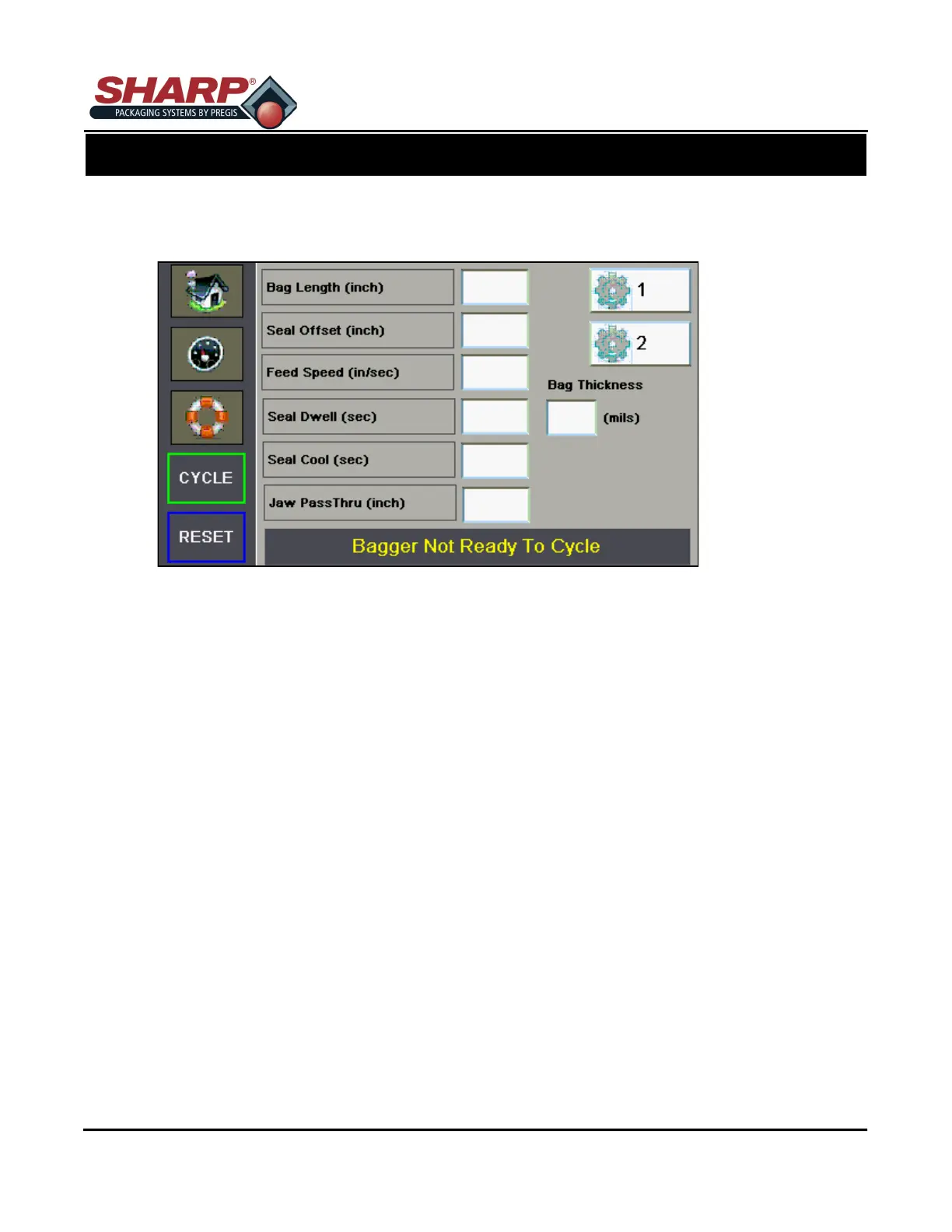 typical setting is 0.5" less than the measured overall bag length. When using sharp bags, enter the length