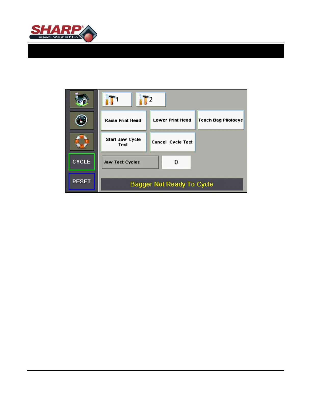 Start Jaw Test Cycle – This is a test cycle of the Jaw and is used by the assembly personnel to break-in